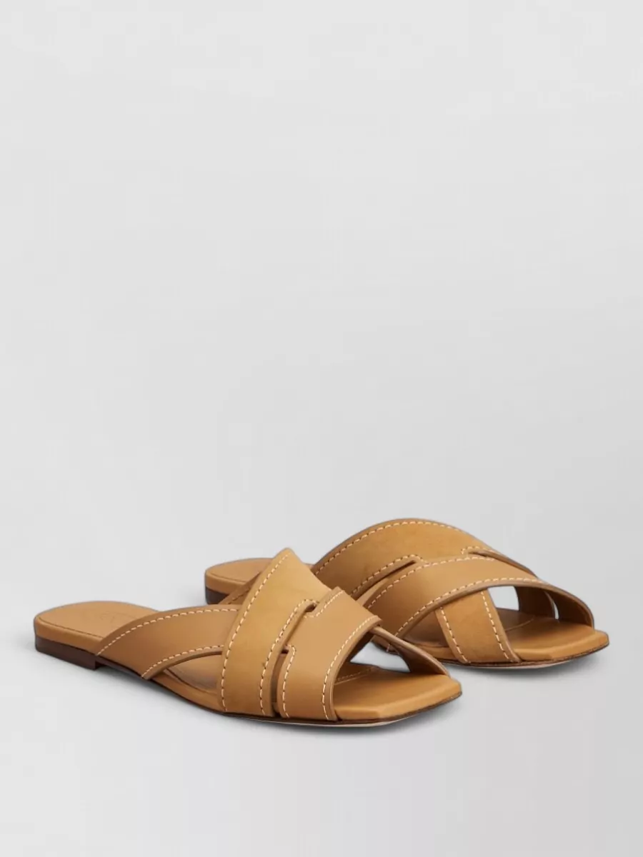 sandals heel contrast stitching crisscross straps