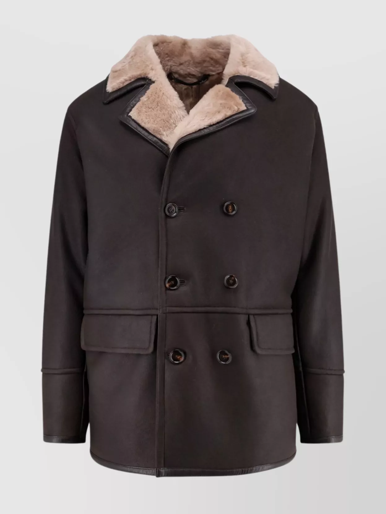 double-breasted shearling jacket pockets
