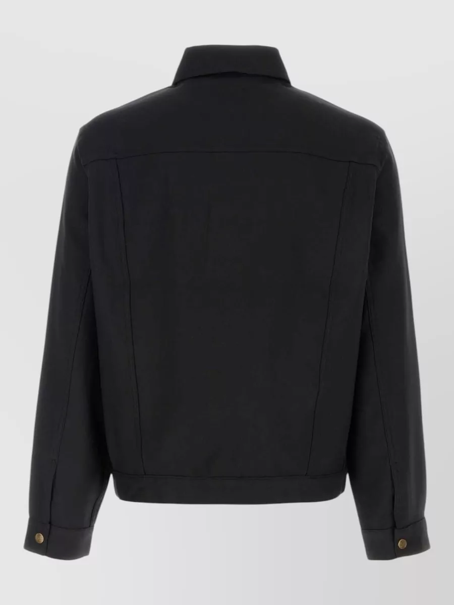 denim jacket collared chest pockets long sleeves