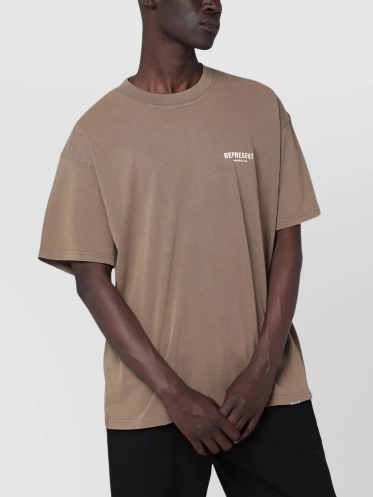 Represent cotton t shirt featuring logo and crew neck