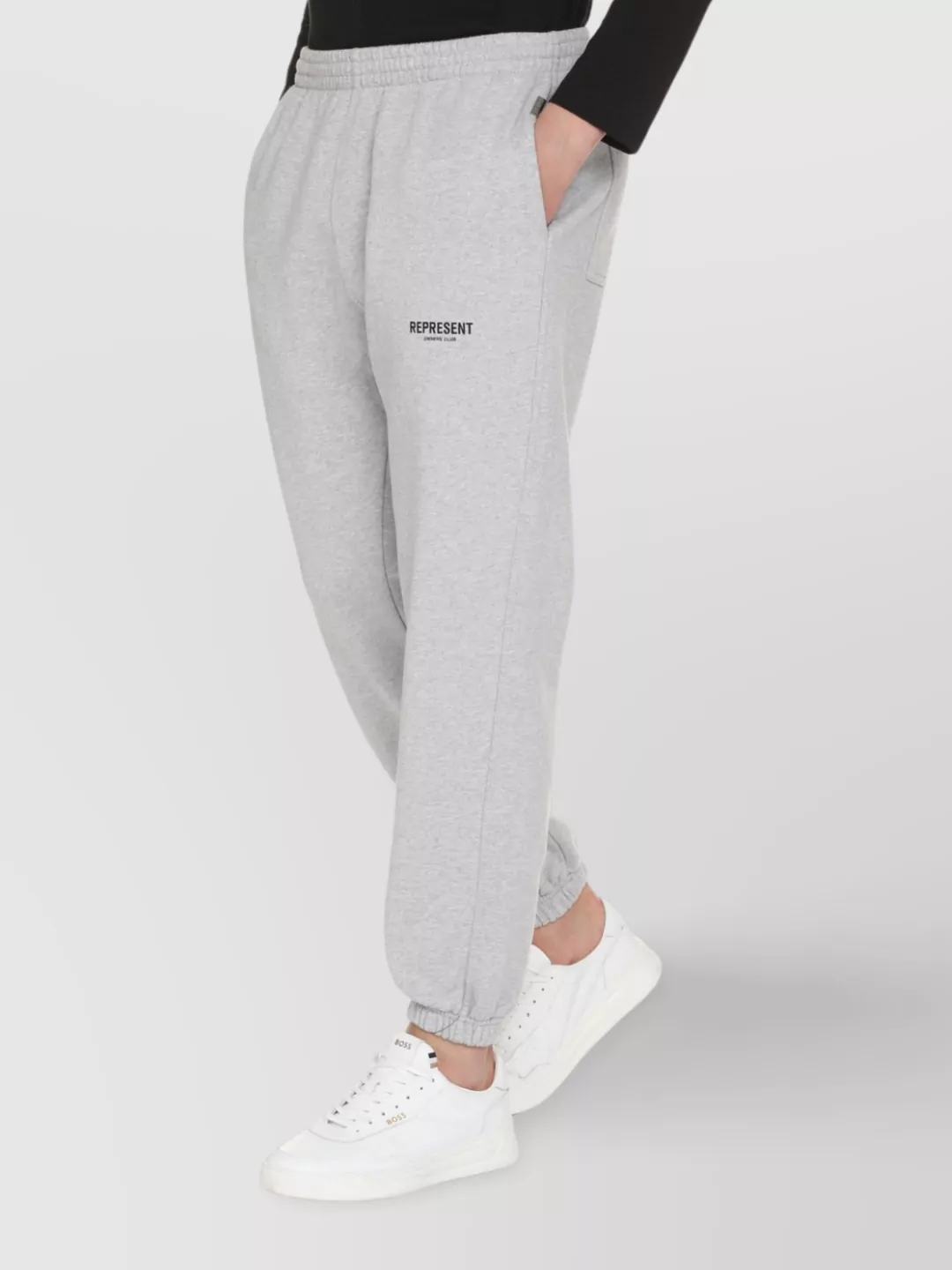Represent jogging trousers with elastic cuffs and waistband