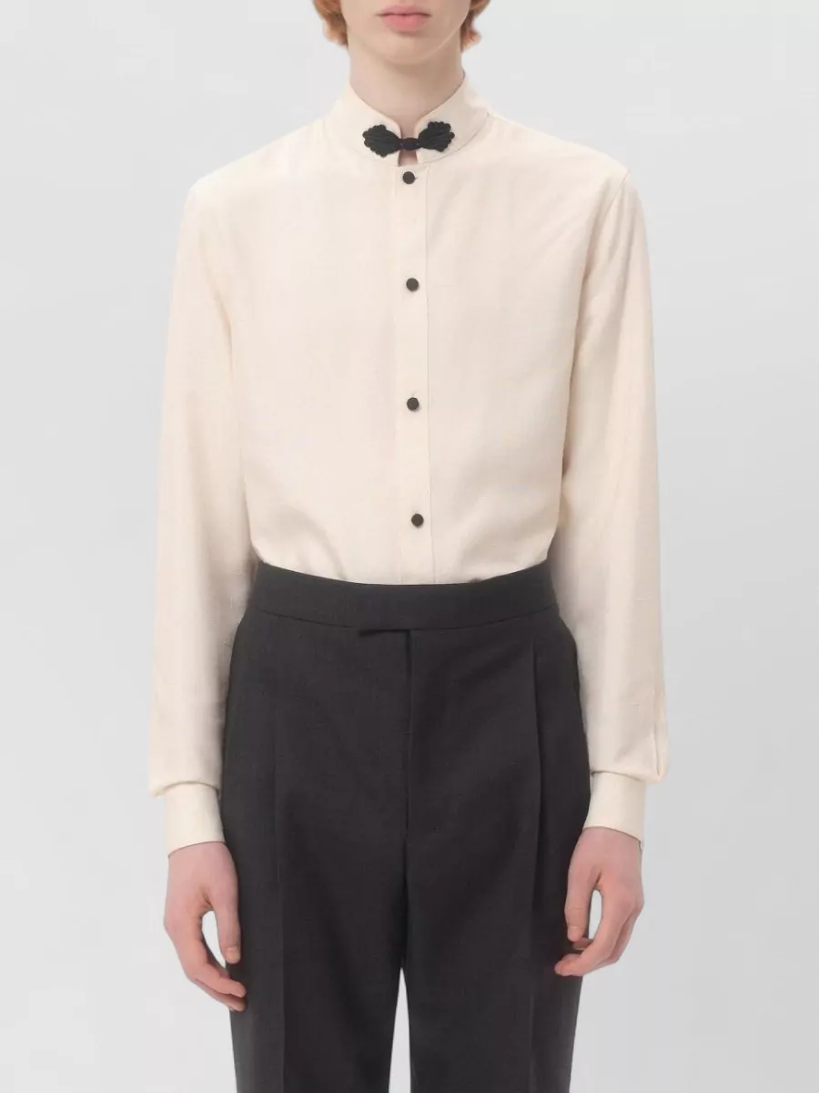 long sleeve silk shirt with decorative detail