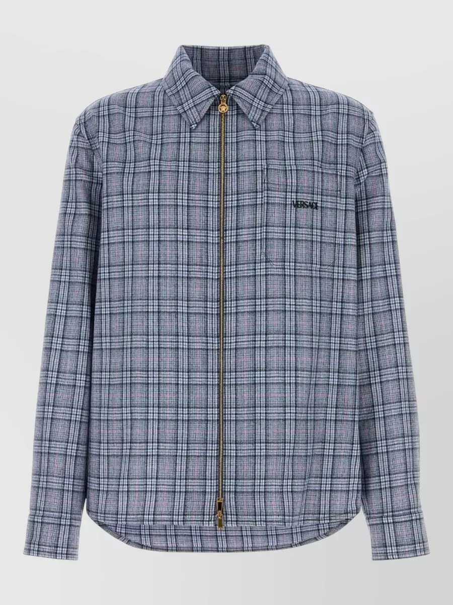 Versace curved collar hem long sleeves button-down jacquard