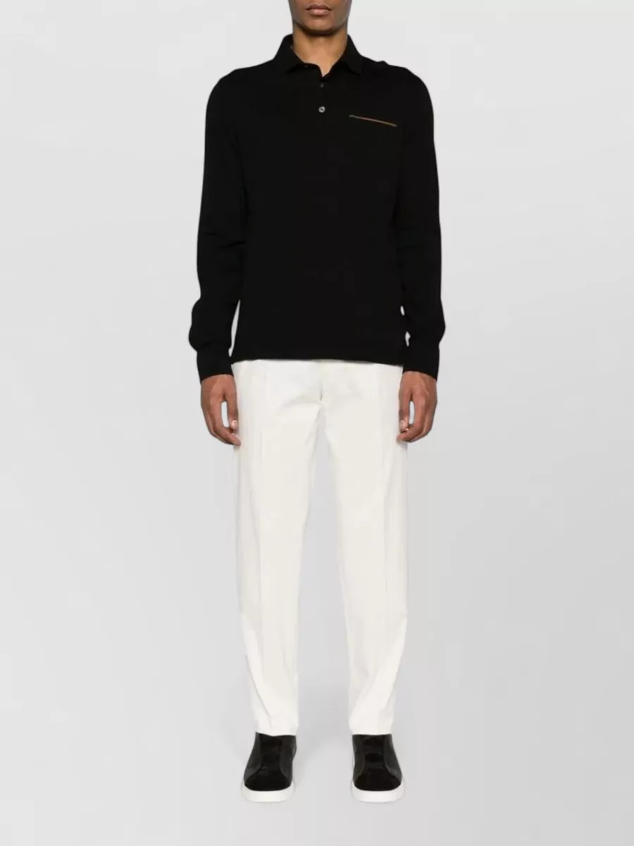Zegna cashmere silk ribbed long-sleeve polo shirt