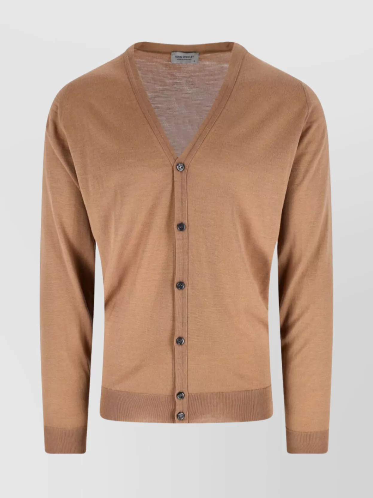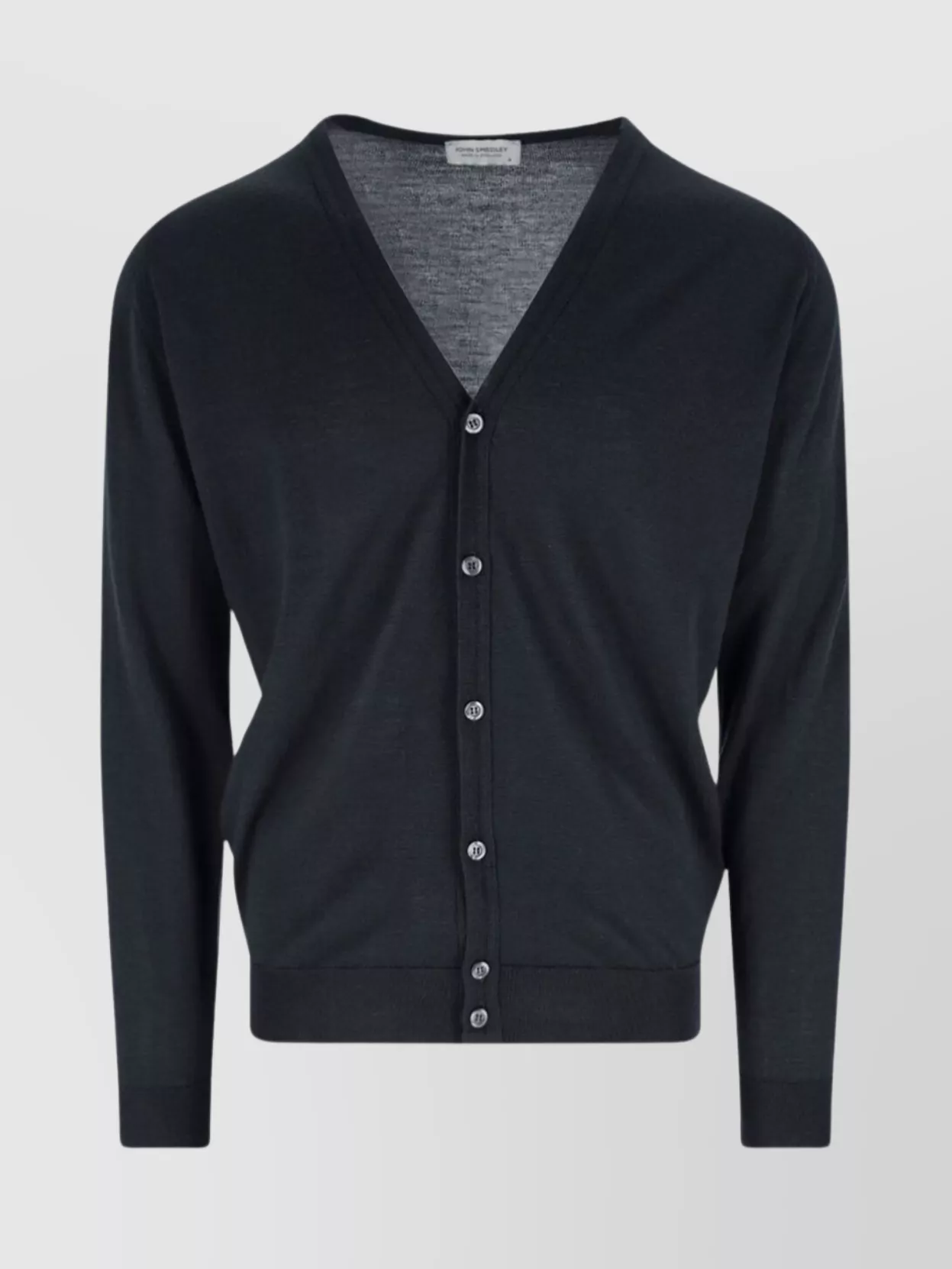John Smedley v-neck knit sweater with ribbed cuffs and hem