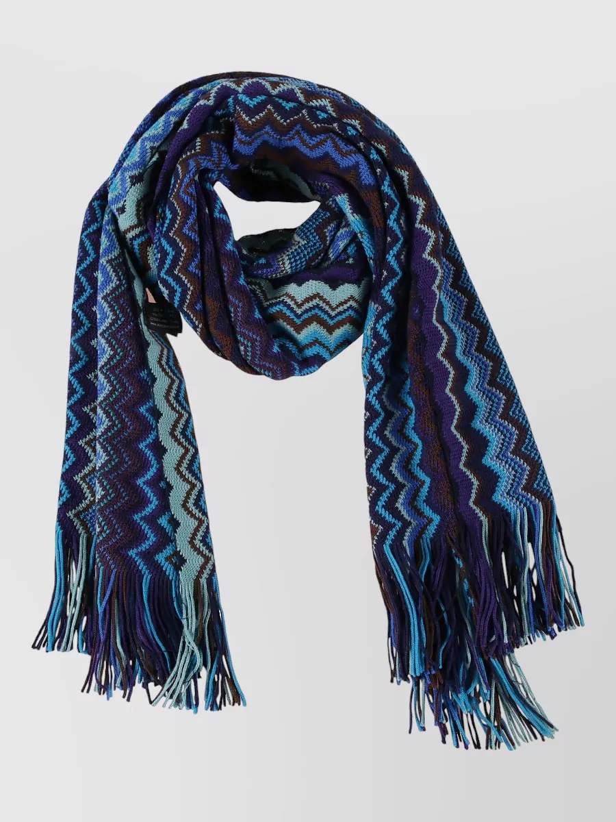 Missoni textured knit scarf fringed ends