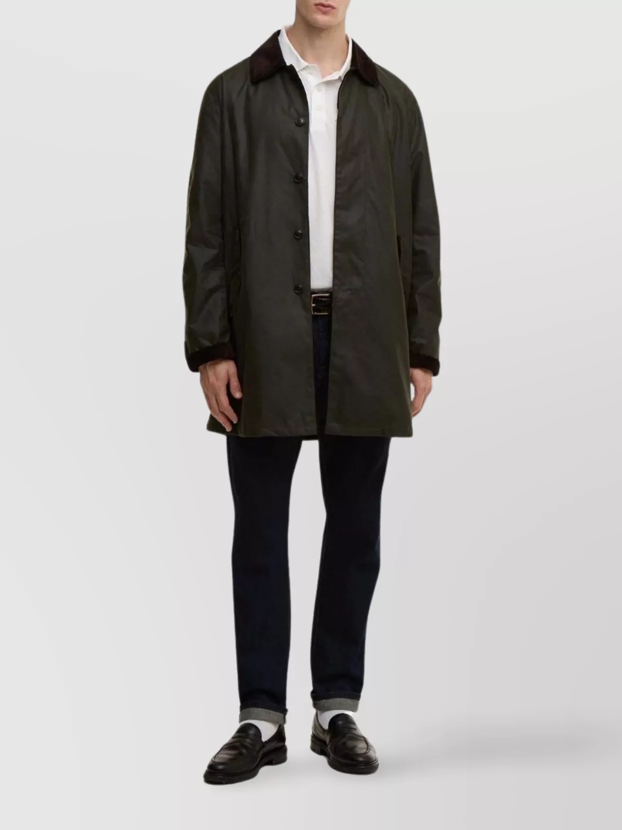 Barbour coat with corduroy collar and vent