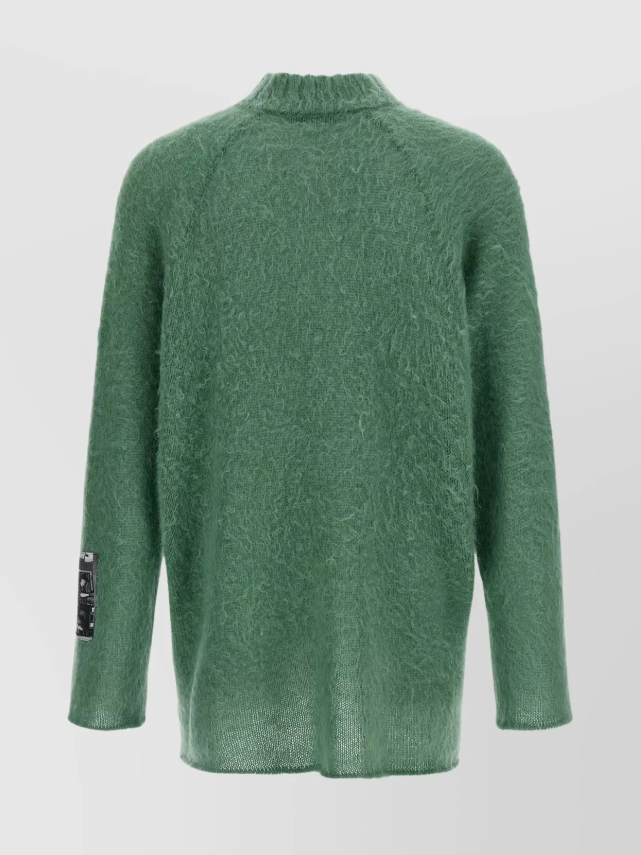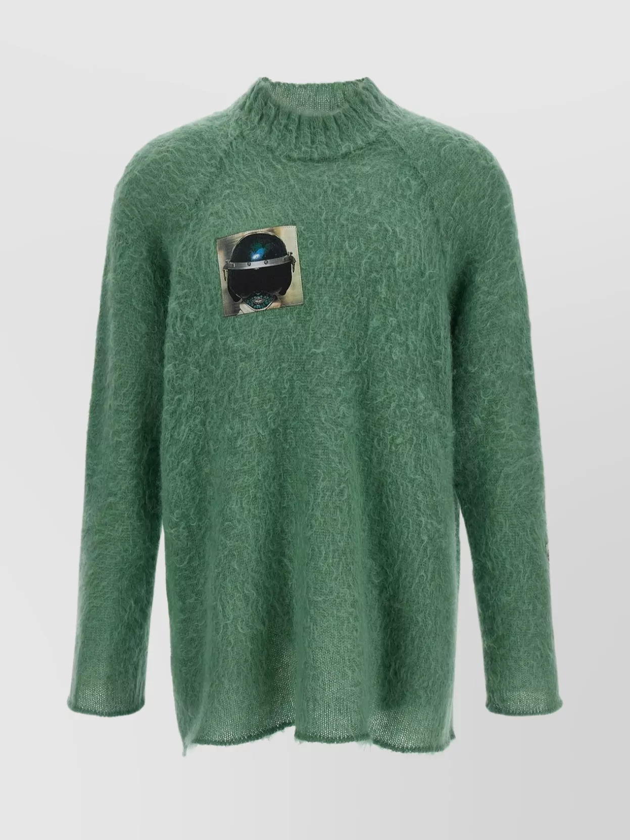 textured knit sweater graphic patch