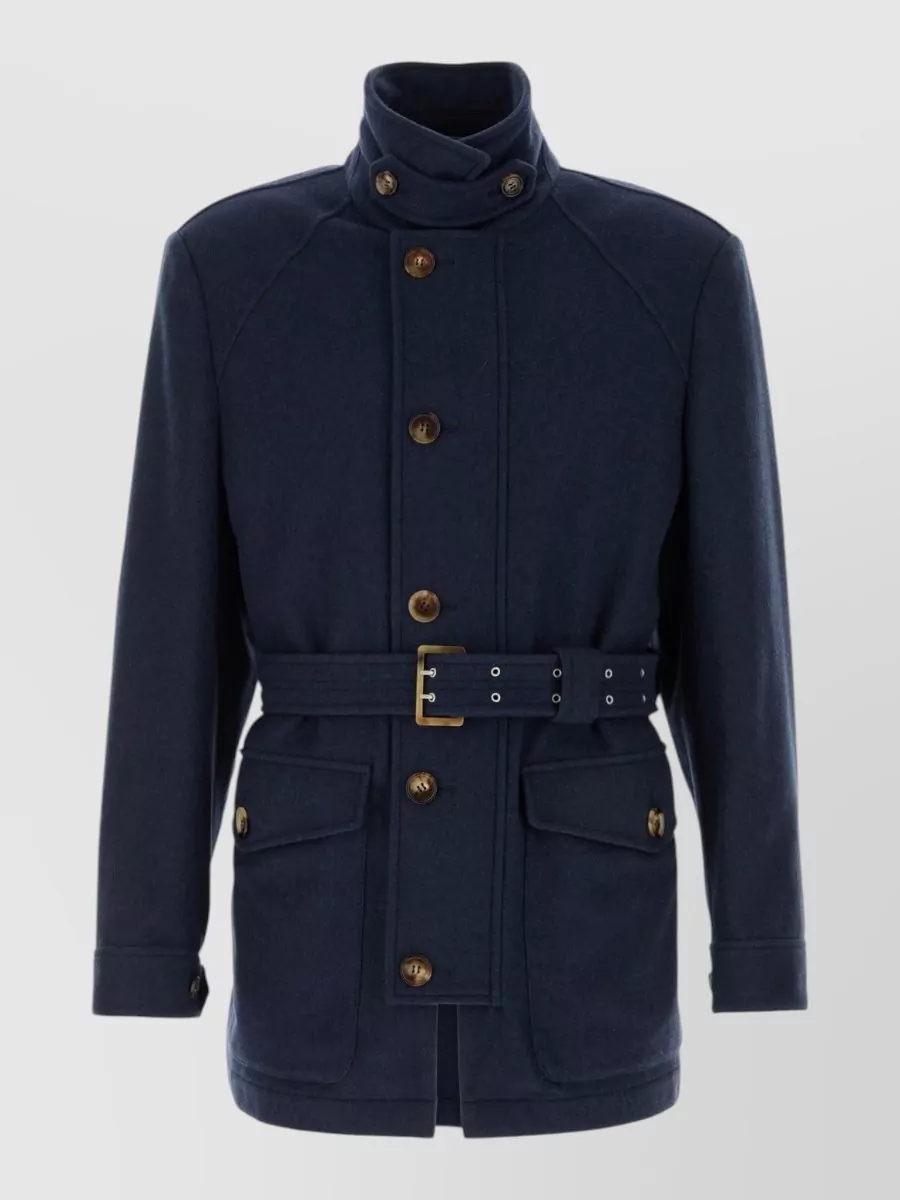 Brioni Stretch cashmere tailored coat structured collar pockets
