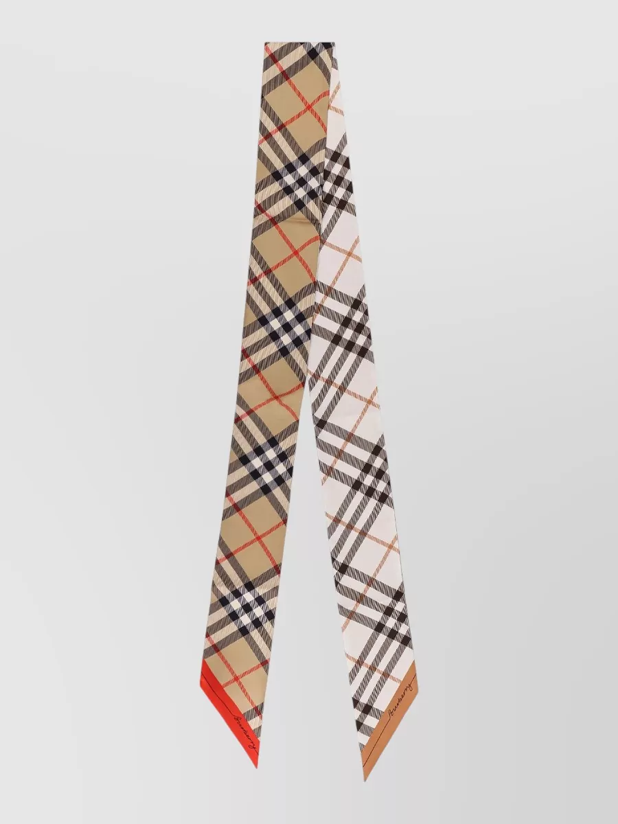 Burberry embroidered silk foulard with check pattern and fringed edges