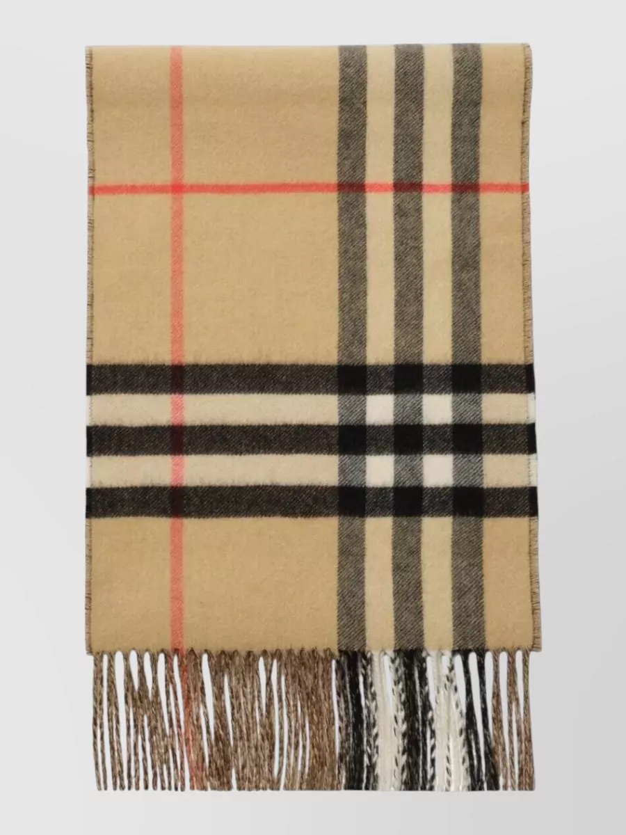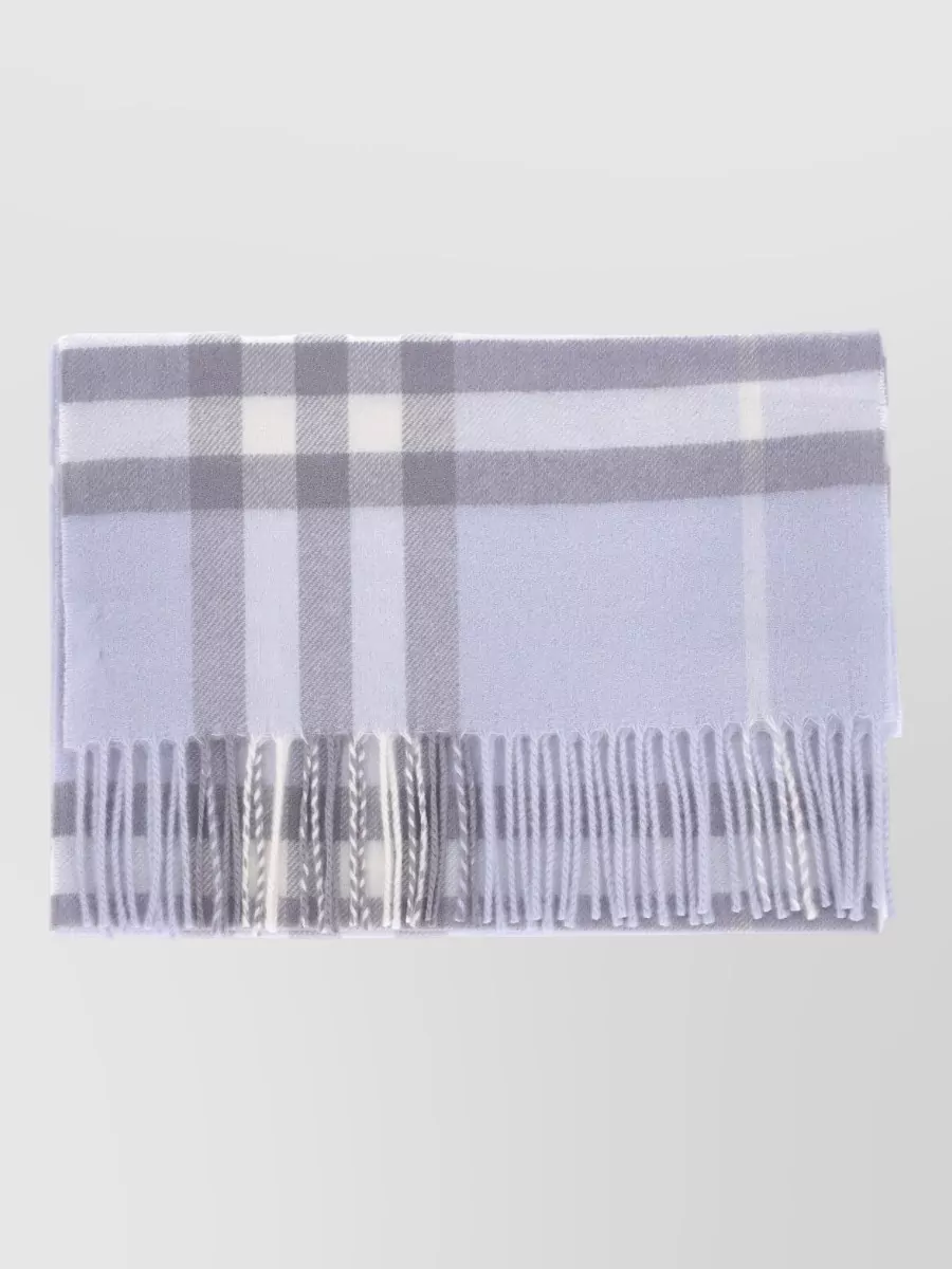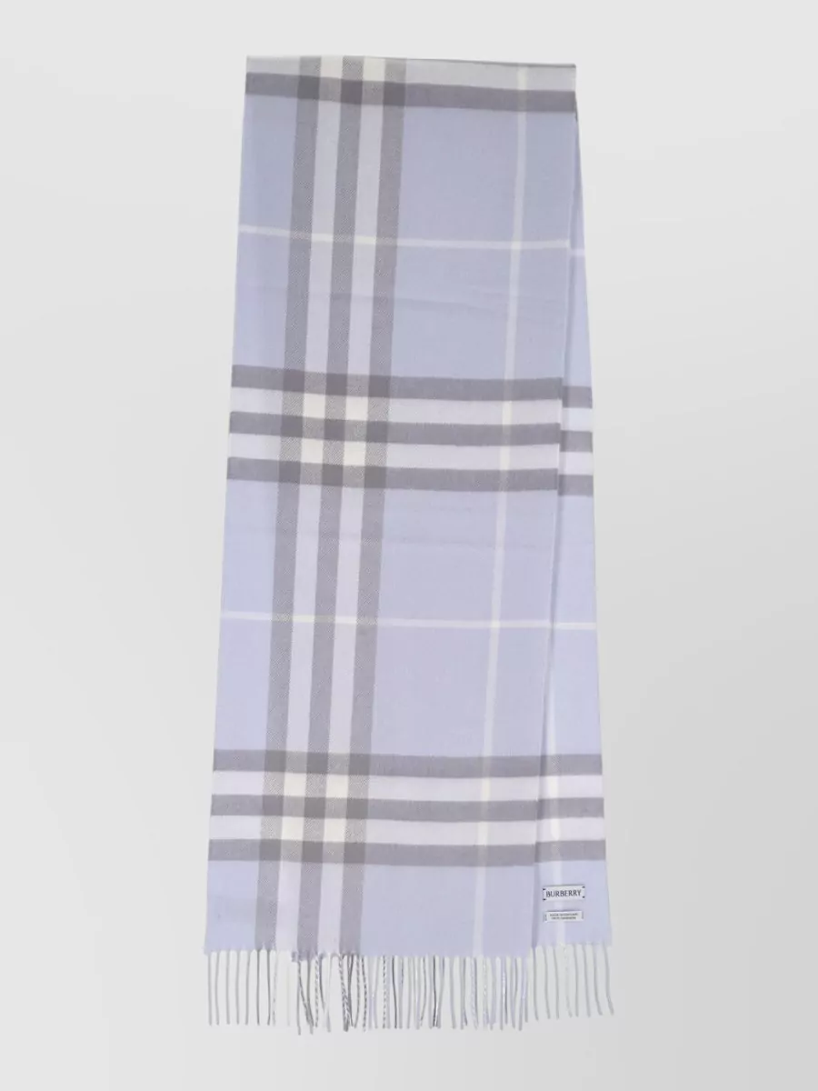 Burberry check pattern fringed edges soft texture scarf