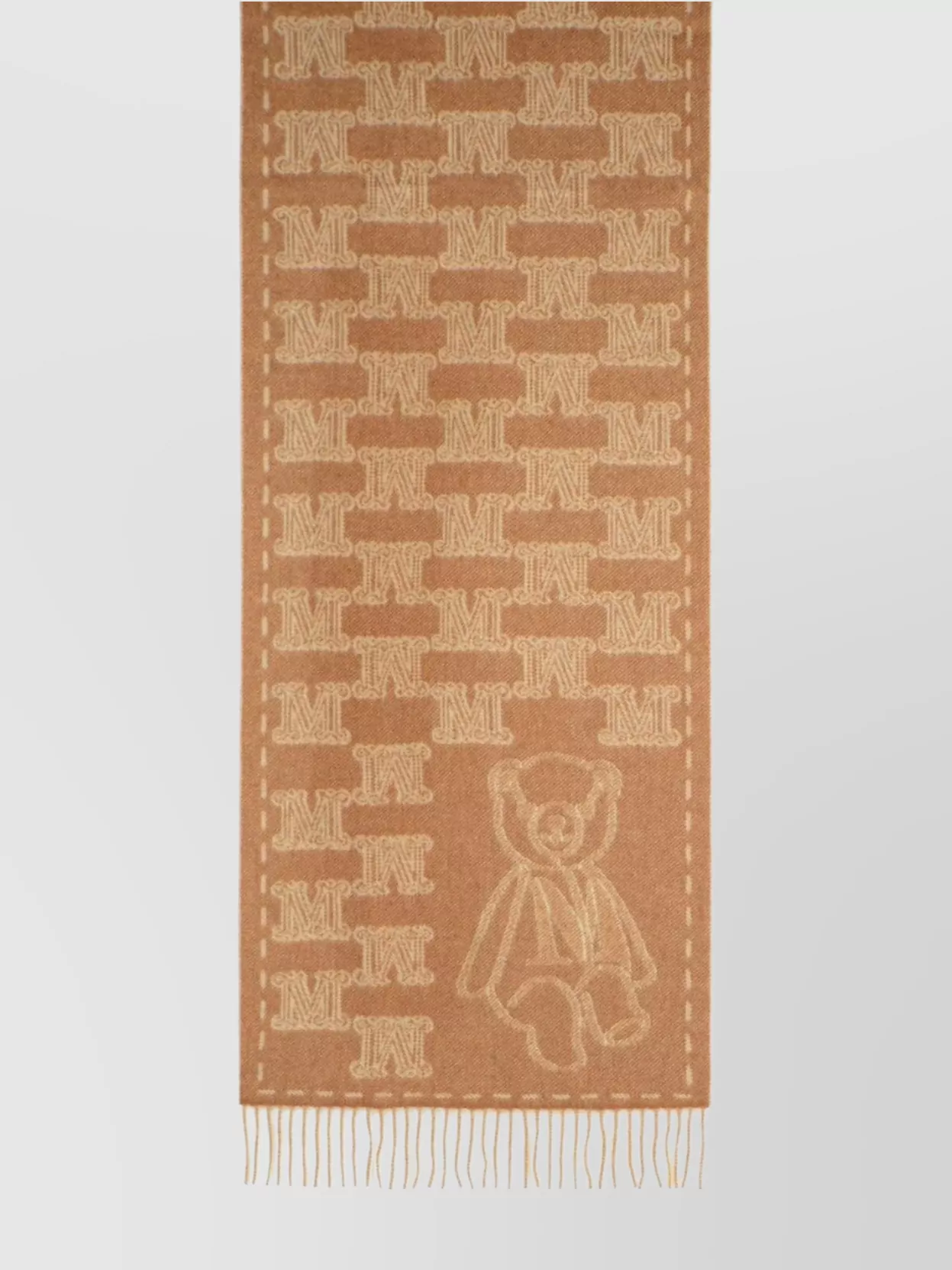 Max Mara 'magico' wool scarf with fringed edges and monogram pattern