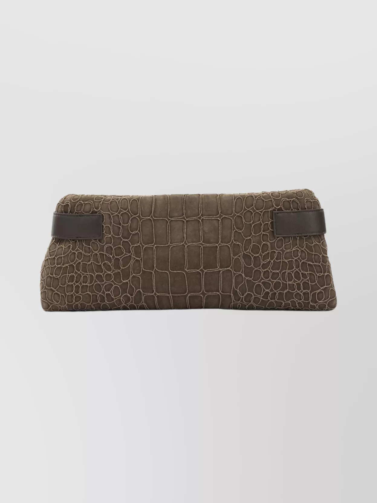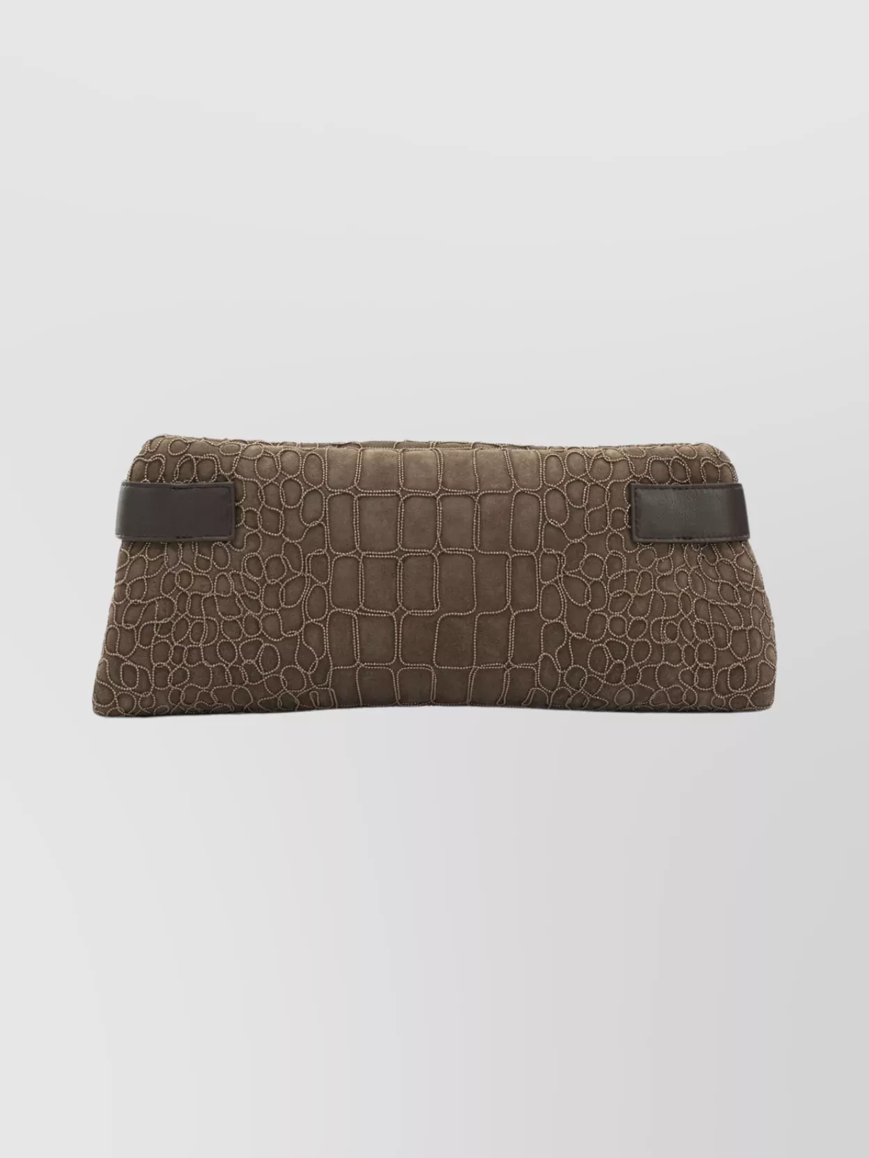 Brunello Cucinelli rectangular crocodile pattern suede clutch bag