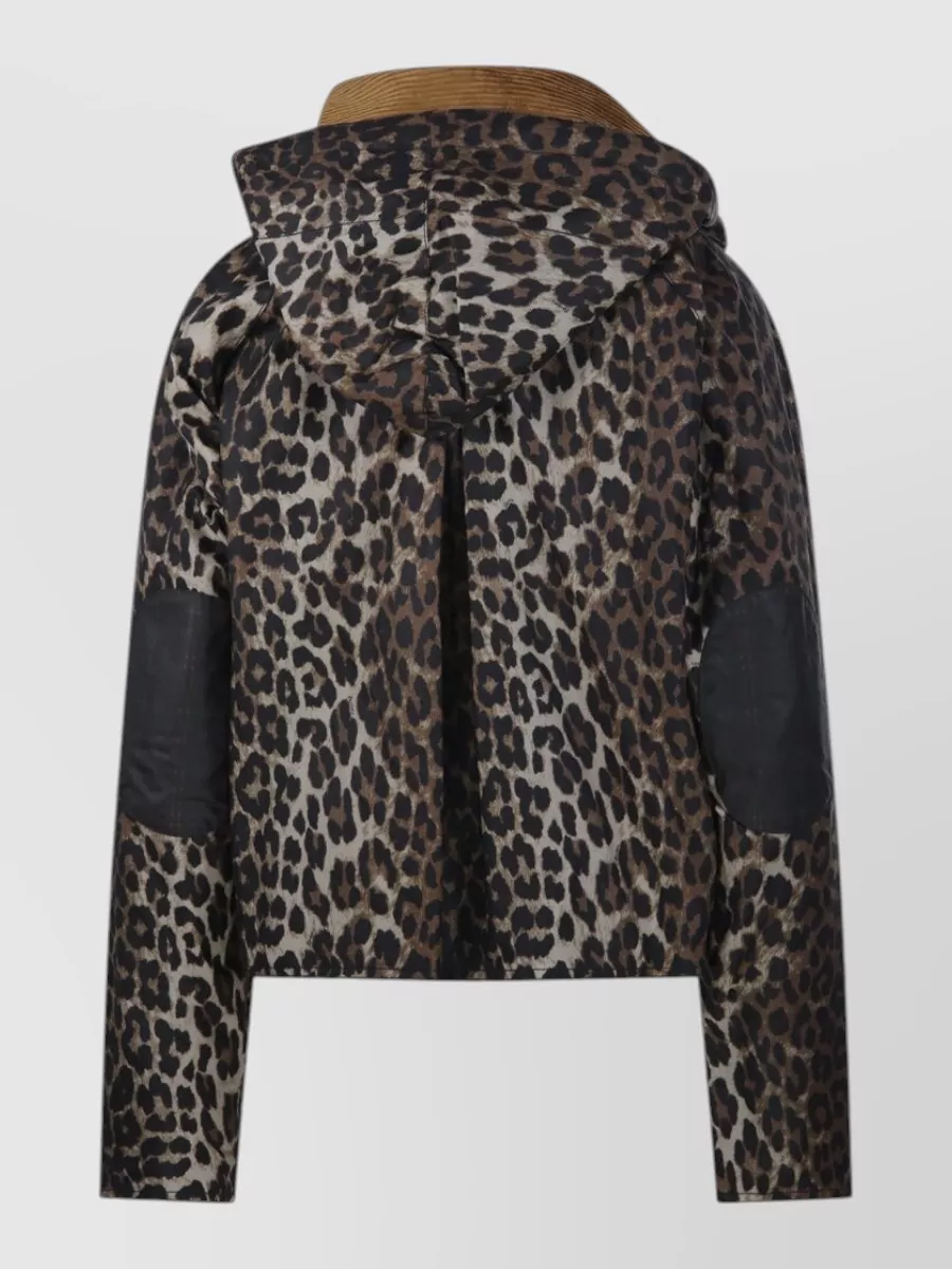 Barbour hooded jacket animal print corduroy collar