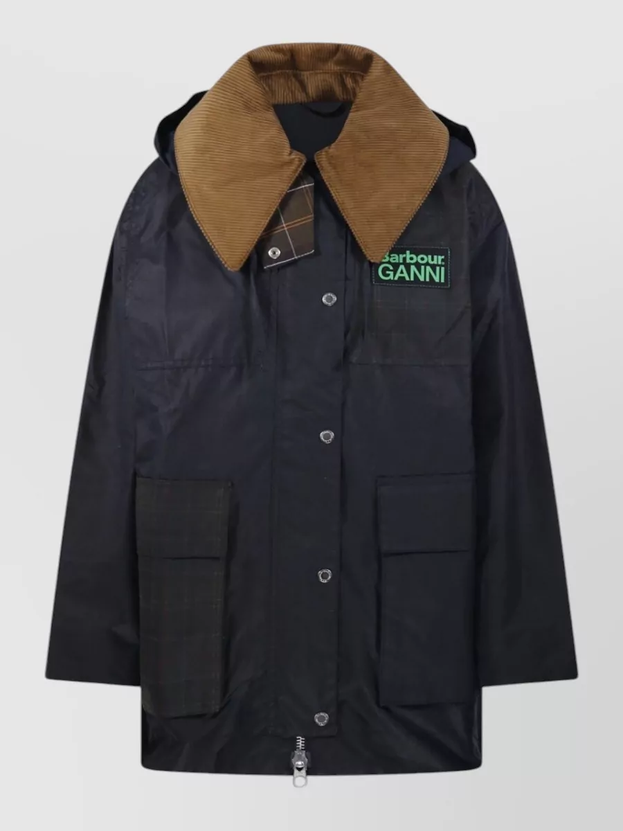 Barbour ganni hood ttn check wax cotton jacket
