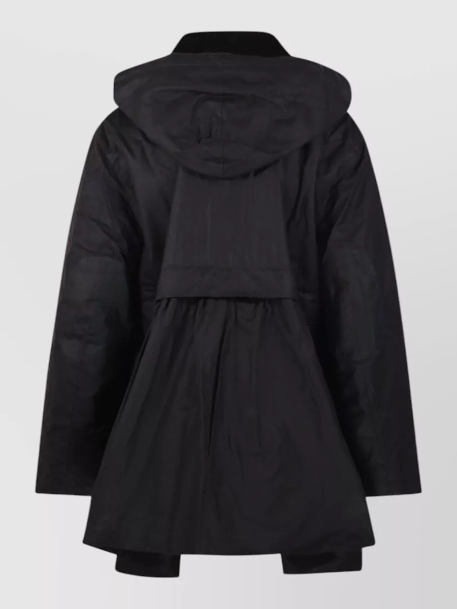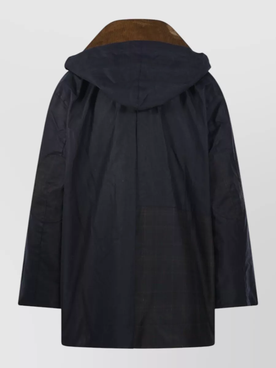 Barbour long hooded coat corduroy collar pockets