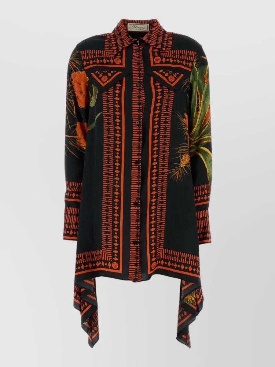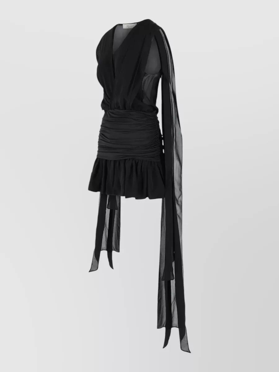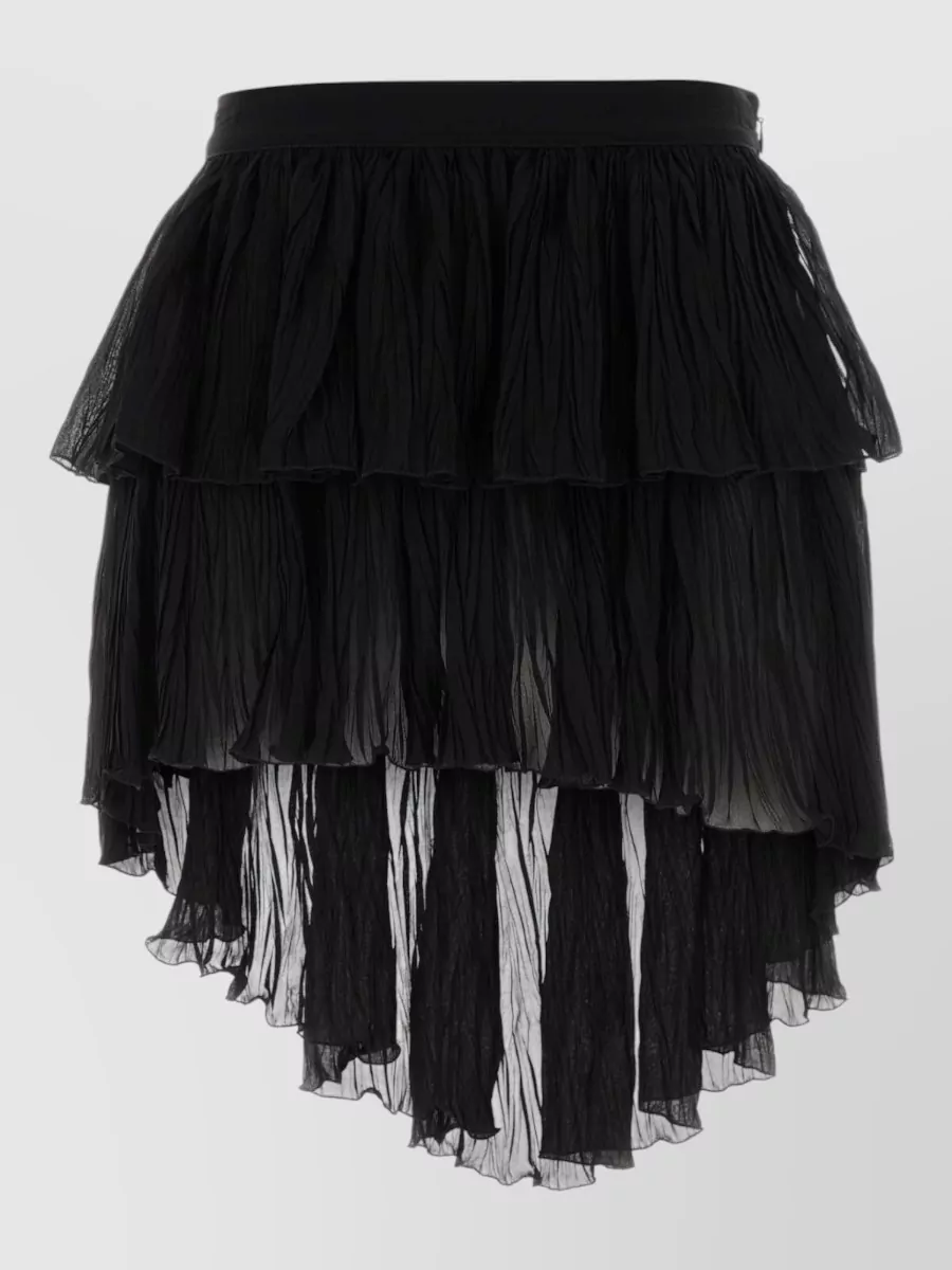 Blumarine crepe mini skirt asymmetric hem ruffles pleats