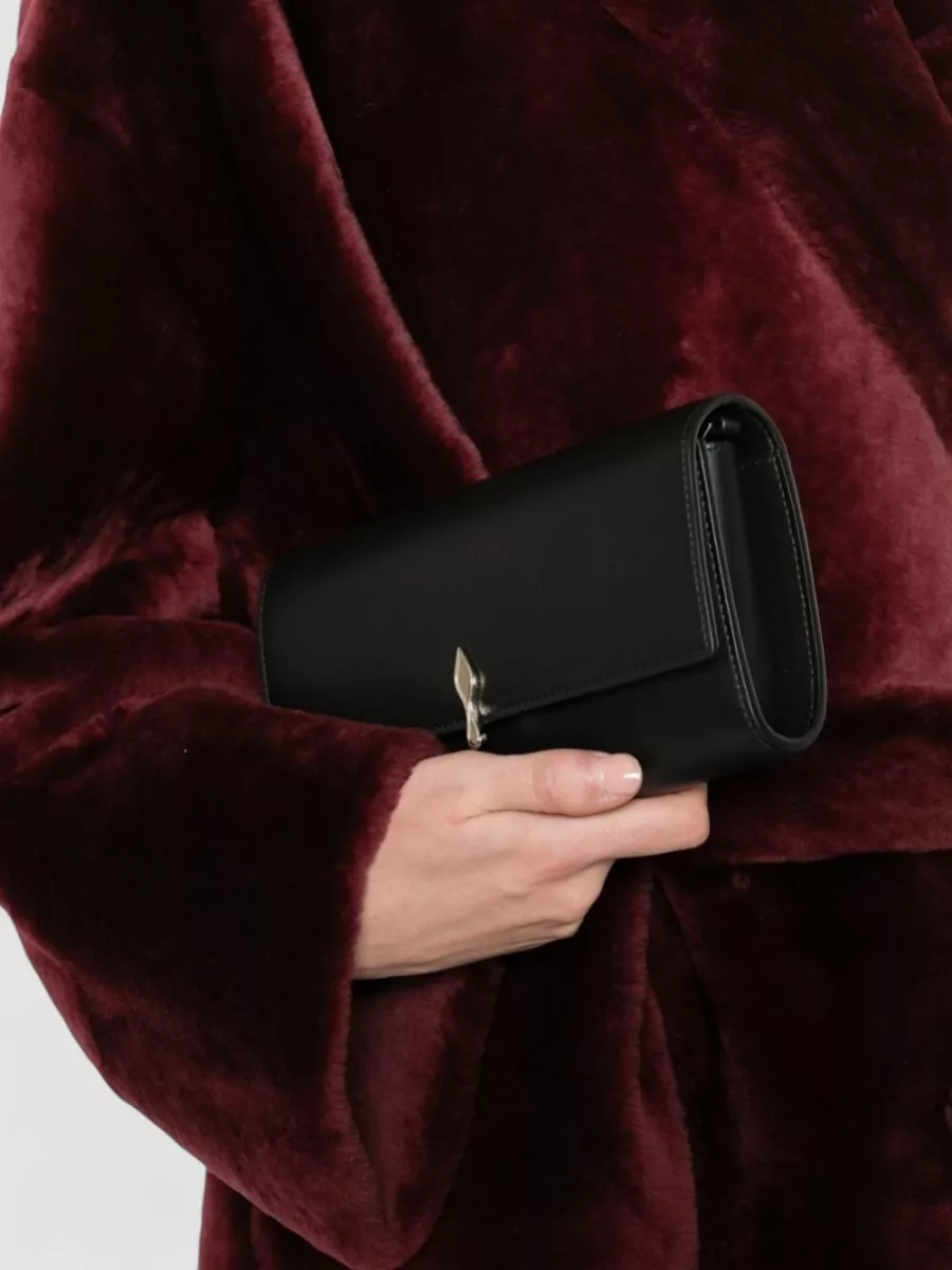 Christian Louboutin rectangular patent clutch featuring chain strap