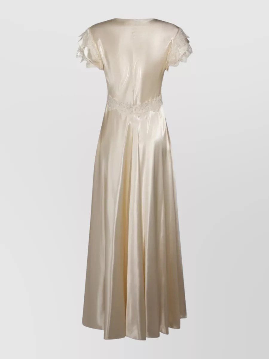 Alberta Ferretti cap sleeves satin lace floor length dress