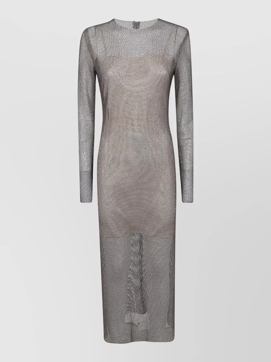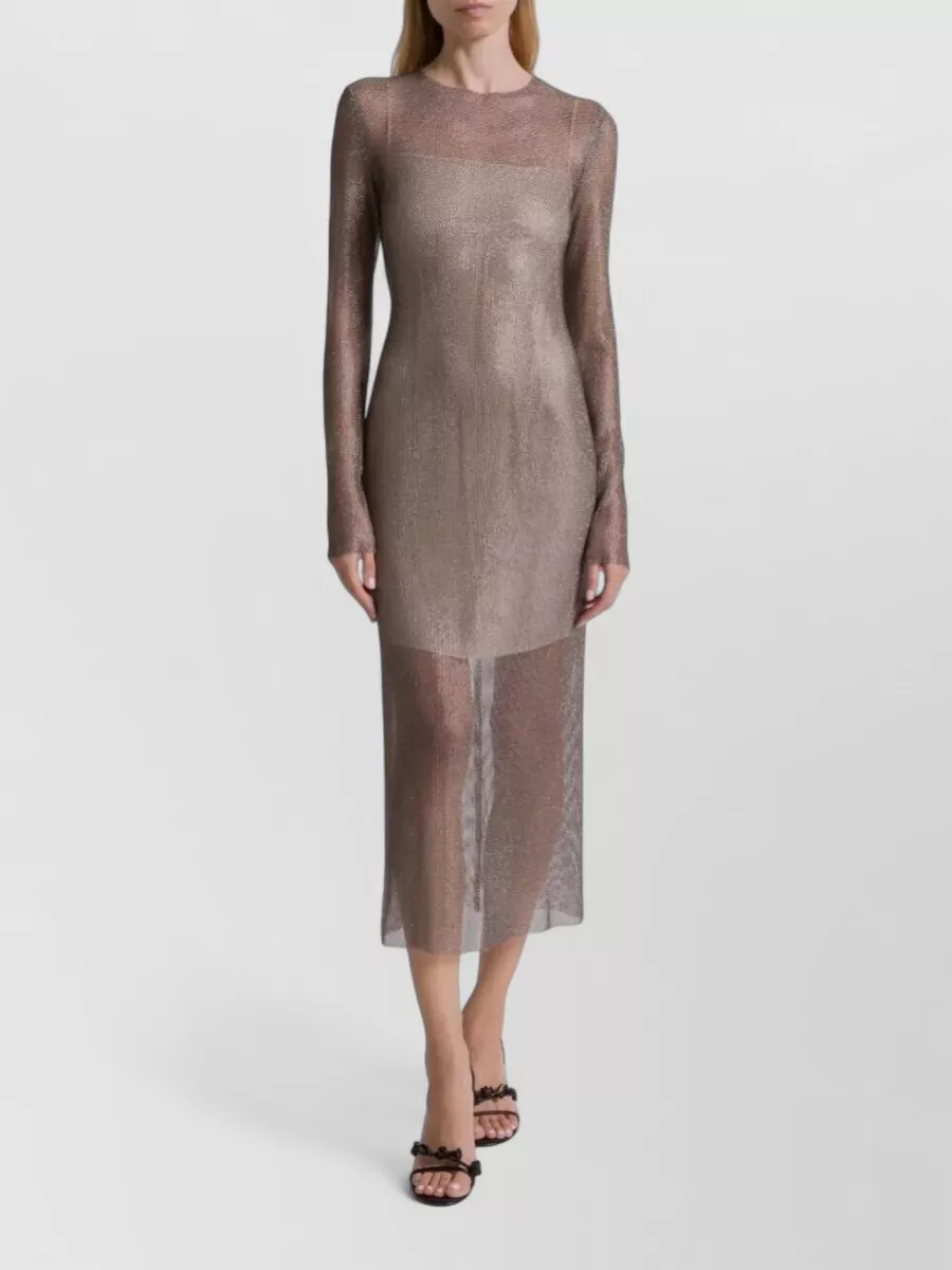 Alberta Ferretti long sleeve maxi dress with mesh overlay