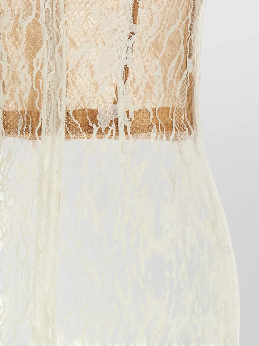 strapless lace midi dress sheer scalloped hem