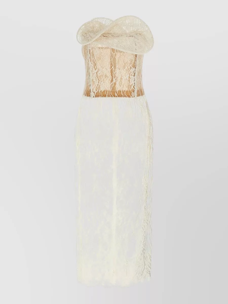 Magda Butrym strapless lace midi dress sheer scalloped hem