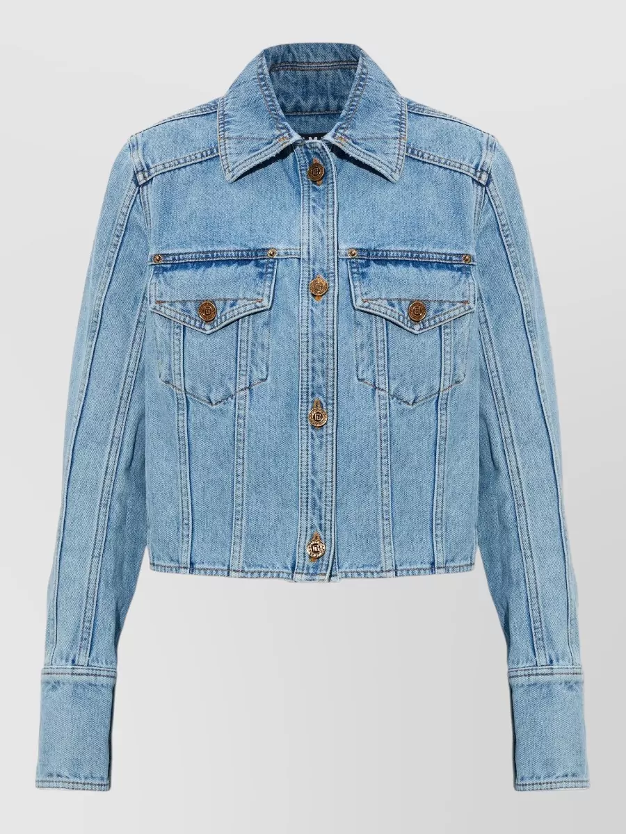 Balmain panel cropped jacket gold buttons sleeves