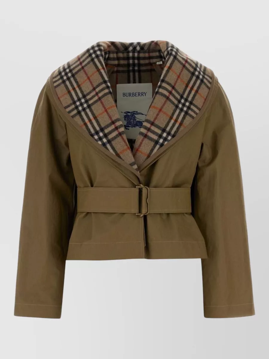 Burberry waist belted patch embroidered collar high