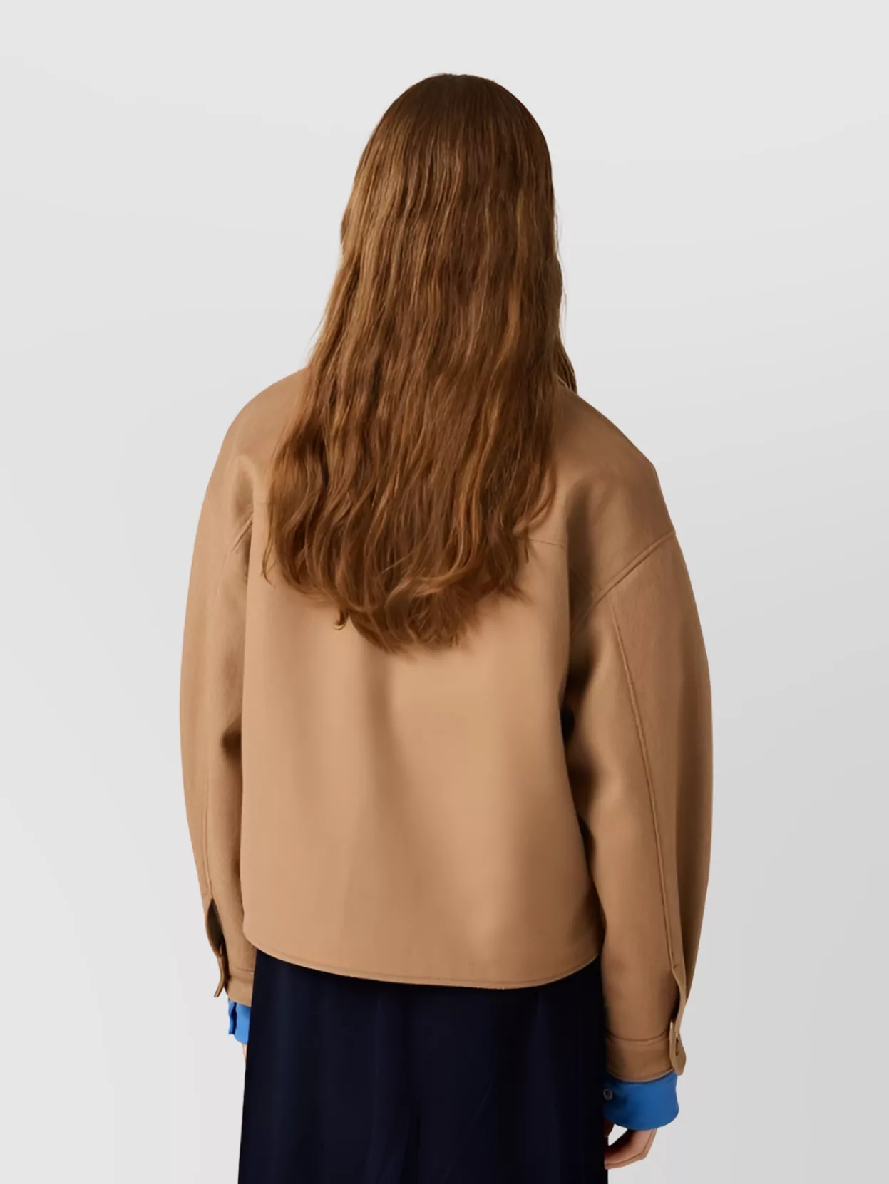 camel jacket with pointed collar and pockets