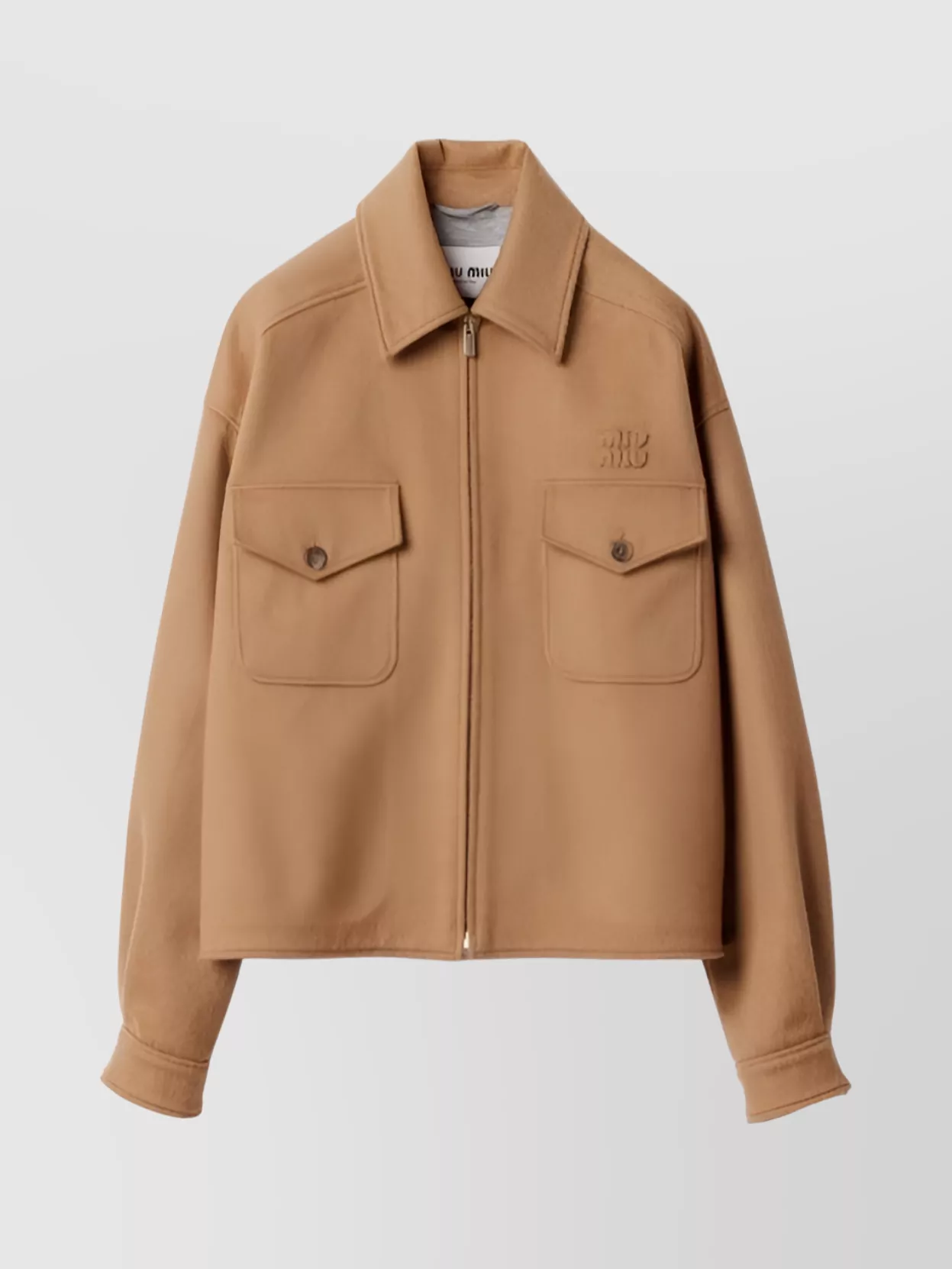 Miu Miu camel jacket with pointed collar and pockets