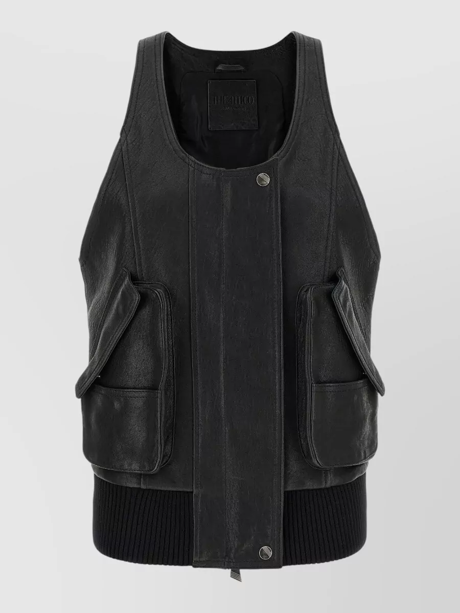 The Attico sleeveless jacket vest front pockets ribbed hem