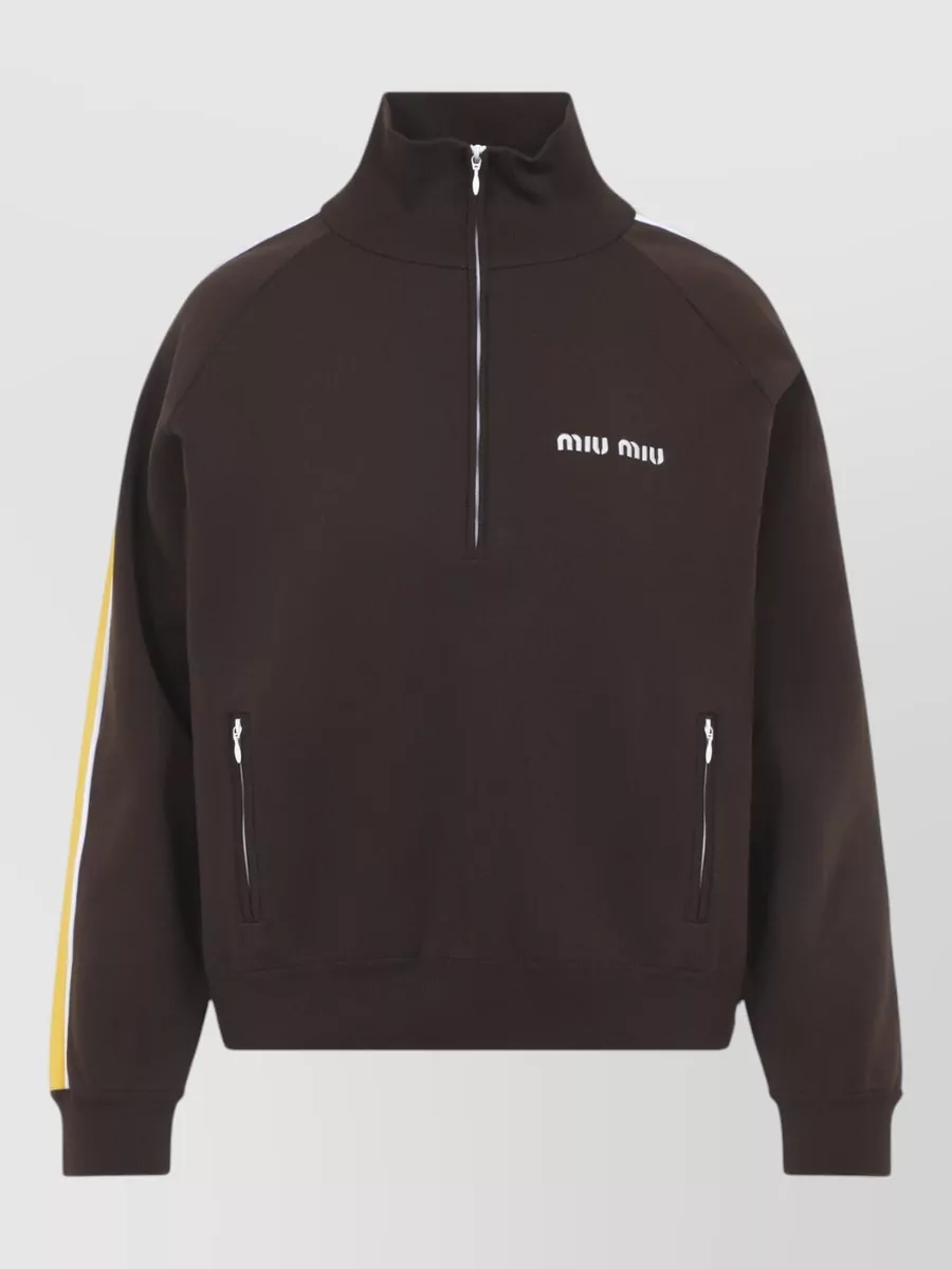Miu Miu high collar knit sweater side stripes