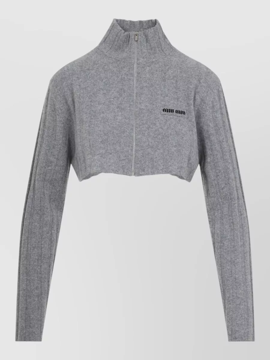 Miu Miu cropped knit cardigan high neck long sleeves