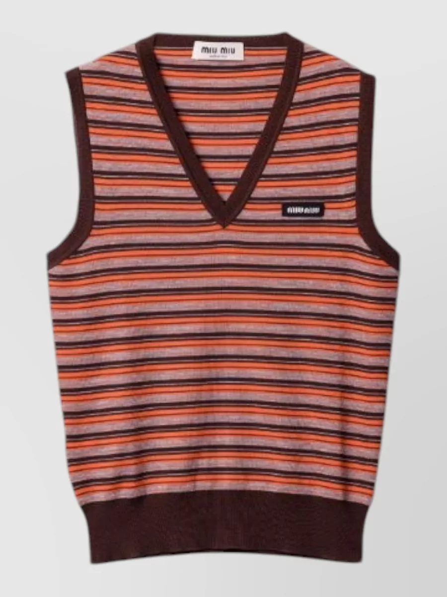 Miu Miu wool striped knit v neck top