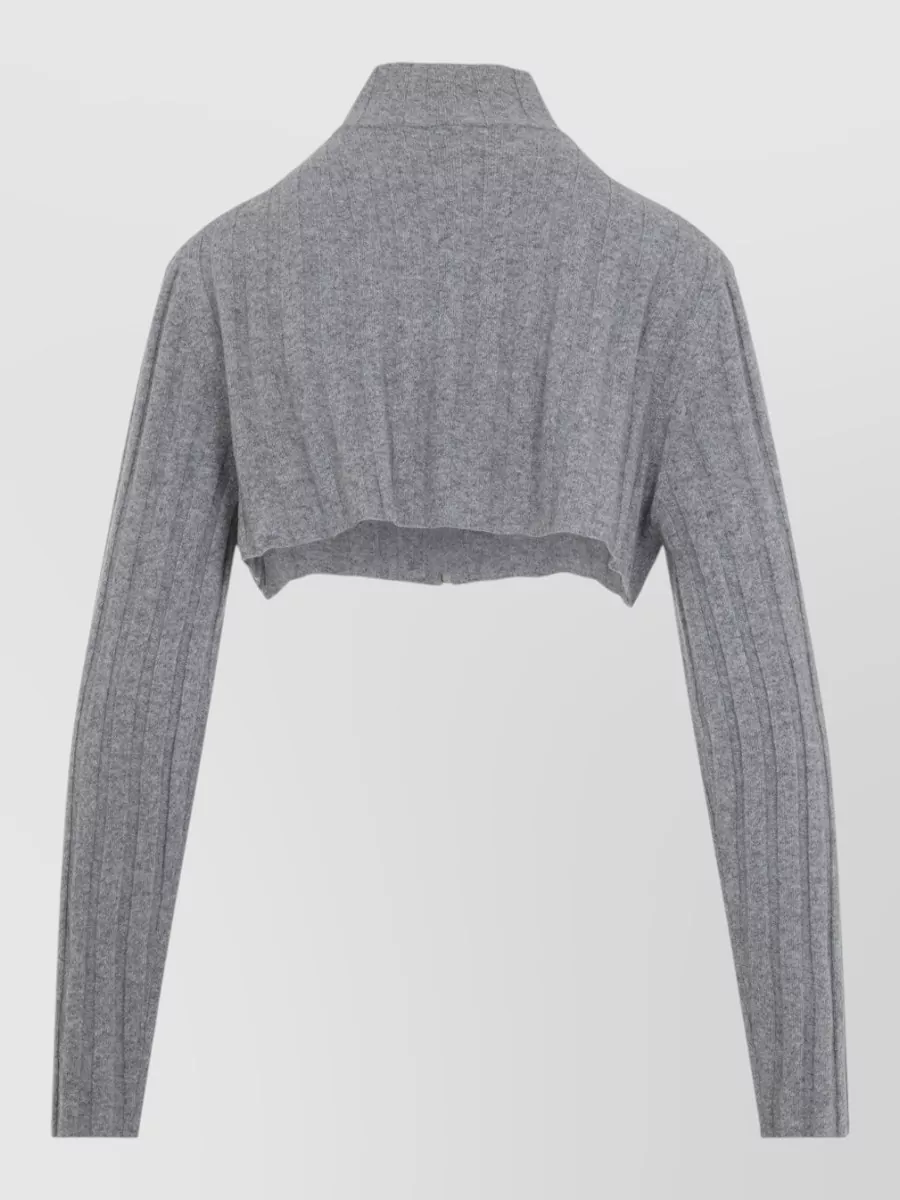 cropped knit cardigan high neck long sleeves