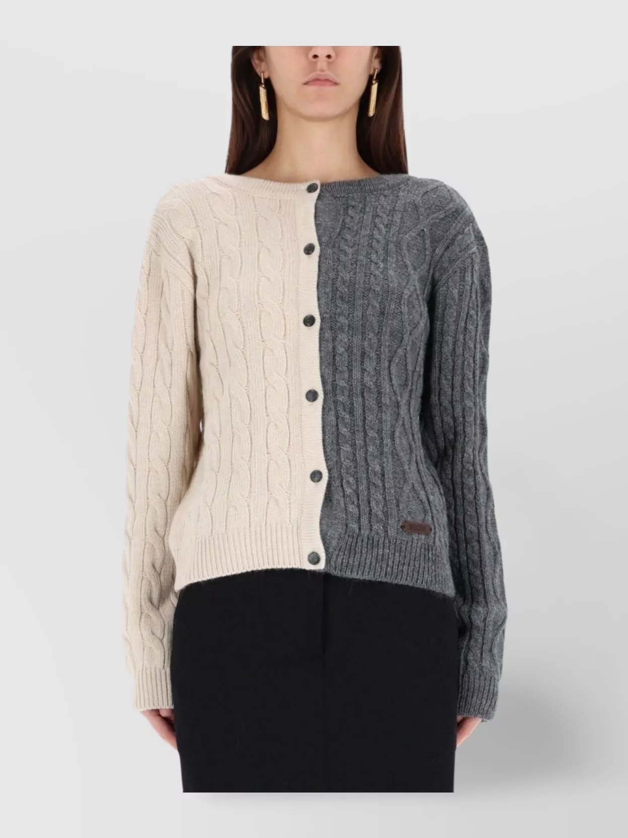 bicolor cable knit cardigan