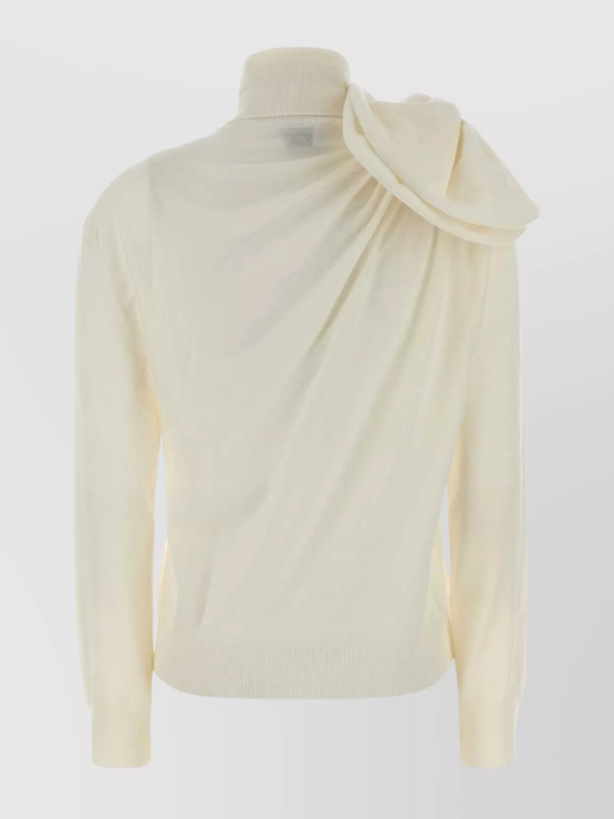 wool turtleneck sweater shoulder detail