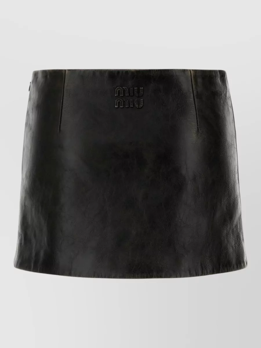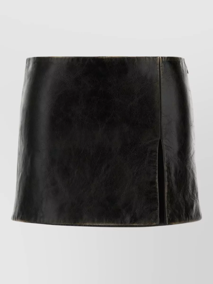 Miu Miu leather mini skirt front slit detail