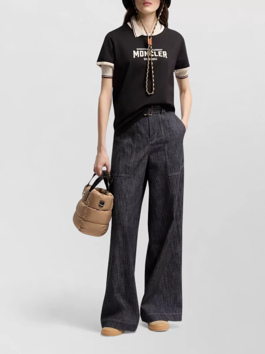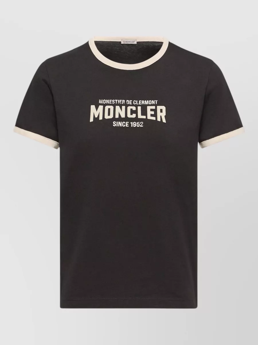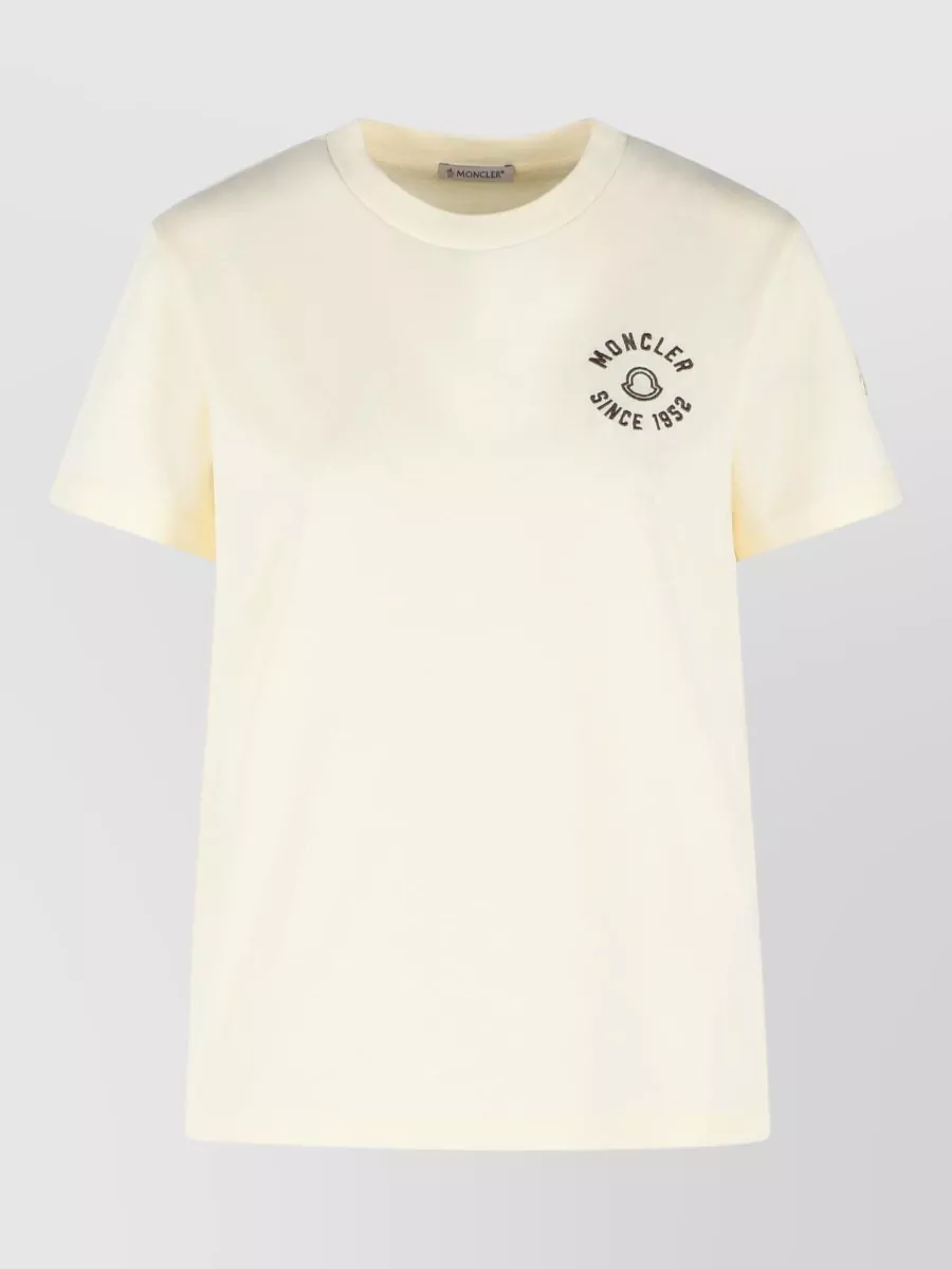 Moncler cotton ribbed crew neck logo embroidered t-shirt