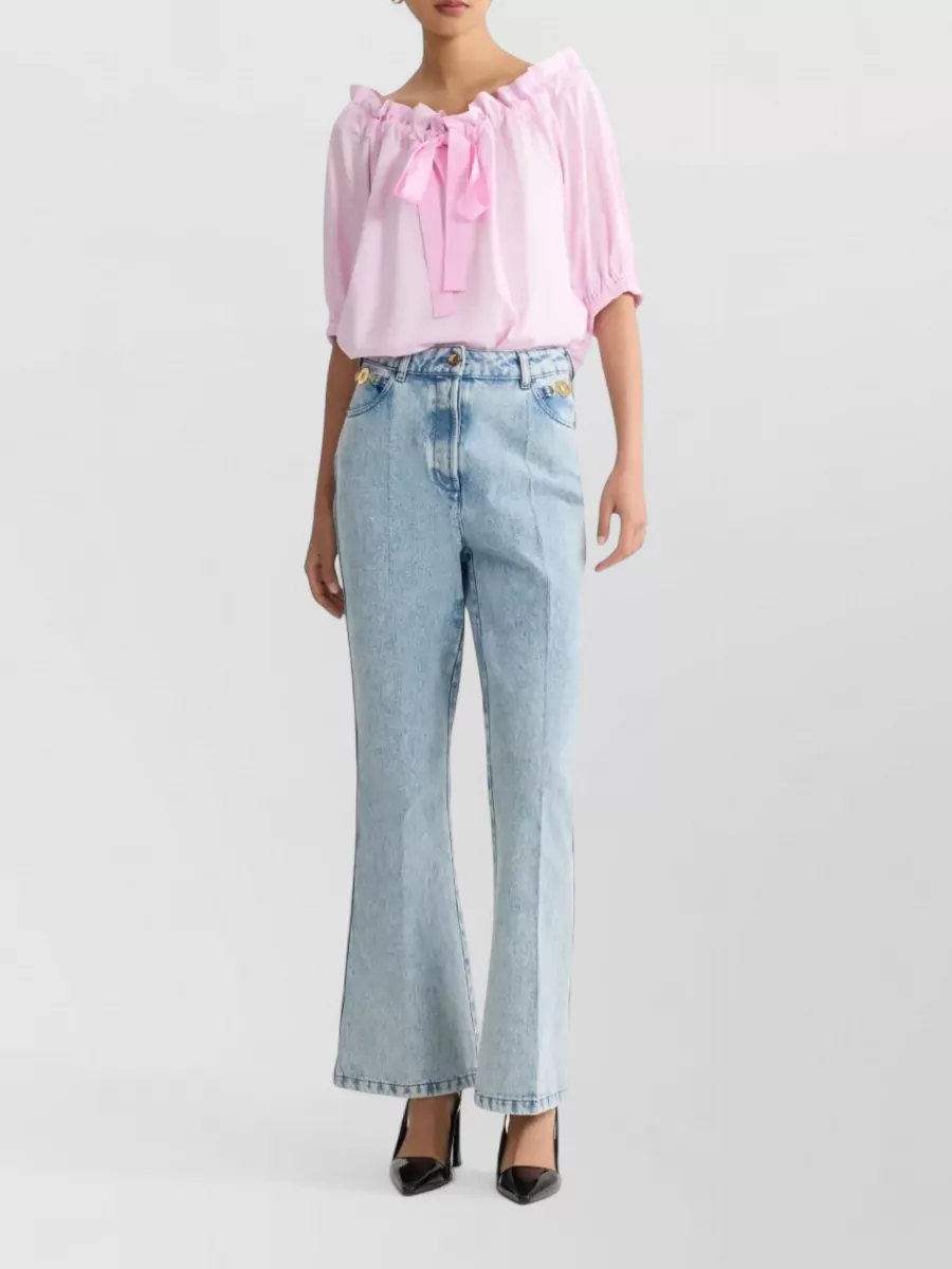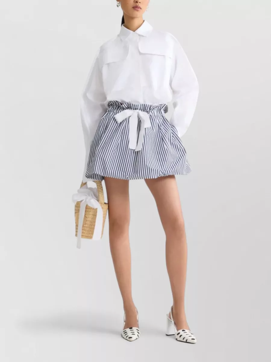 Patou scallop-trim bow sweetheart-neck sleeveless mini dress
