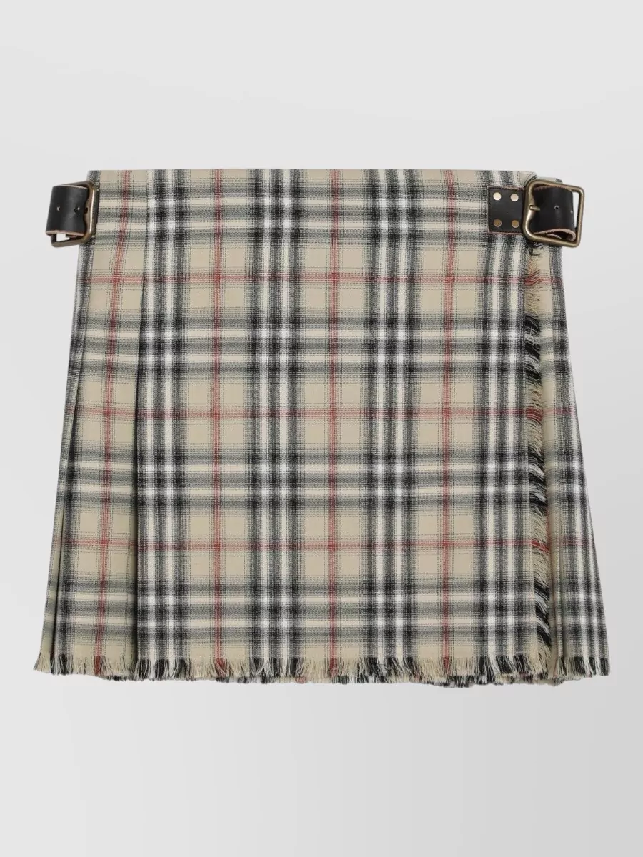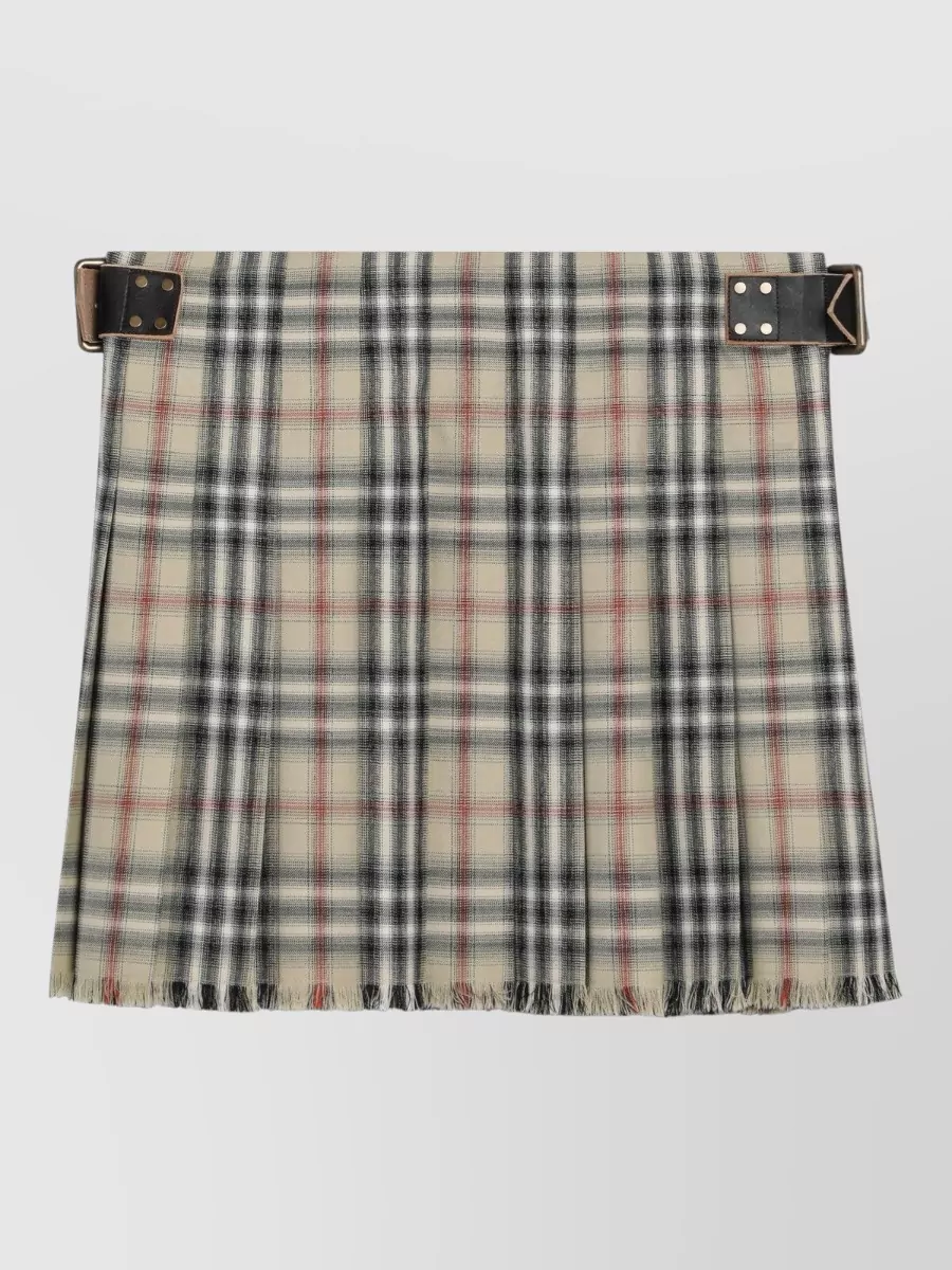 Burberry pleated high waist check pattern kilt skirt with buckle