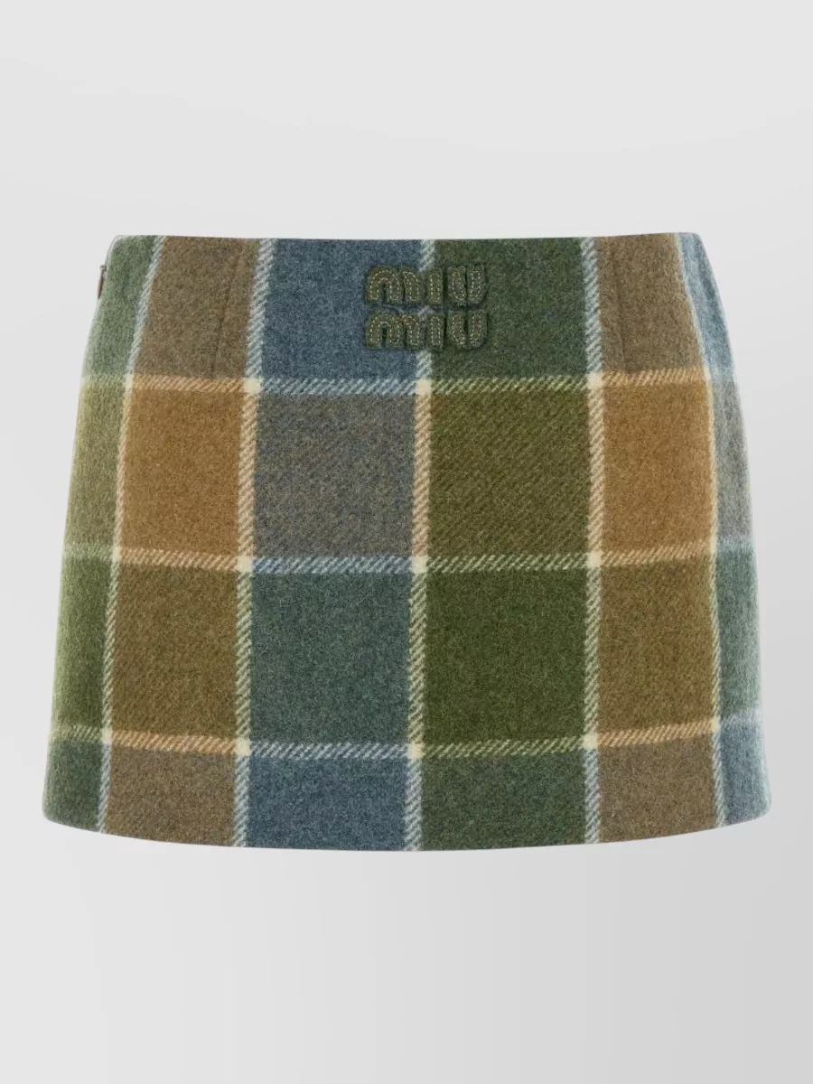 Miu Miu mini skirt with embroidered cotton checkered pattern