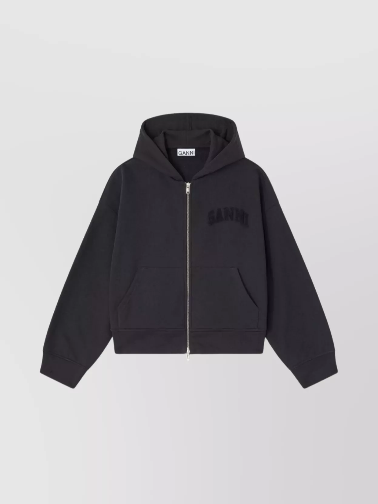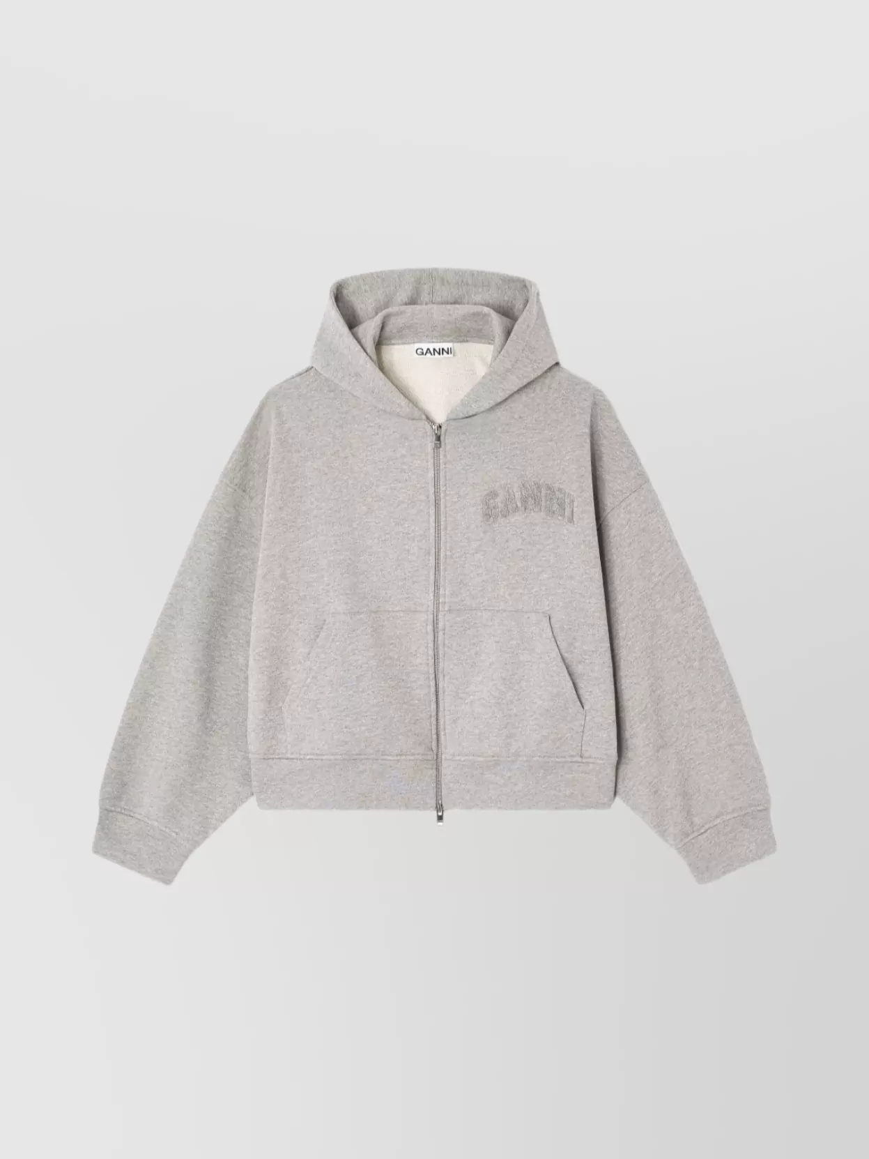 Ganni oversize cotton sweatshirt with hood and graphic print