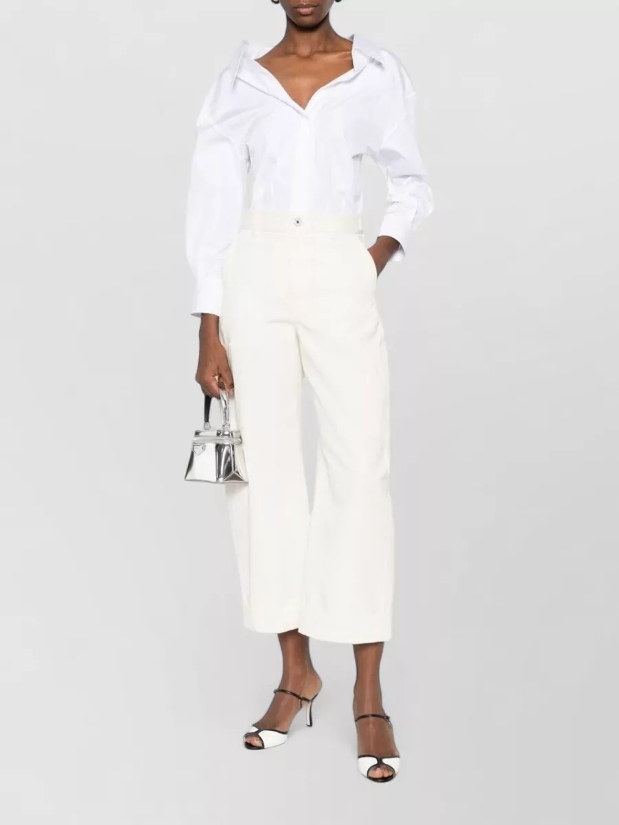 cotton shirt asymmetric hemline long sleeves buttoned cuffs
