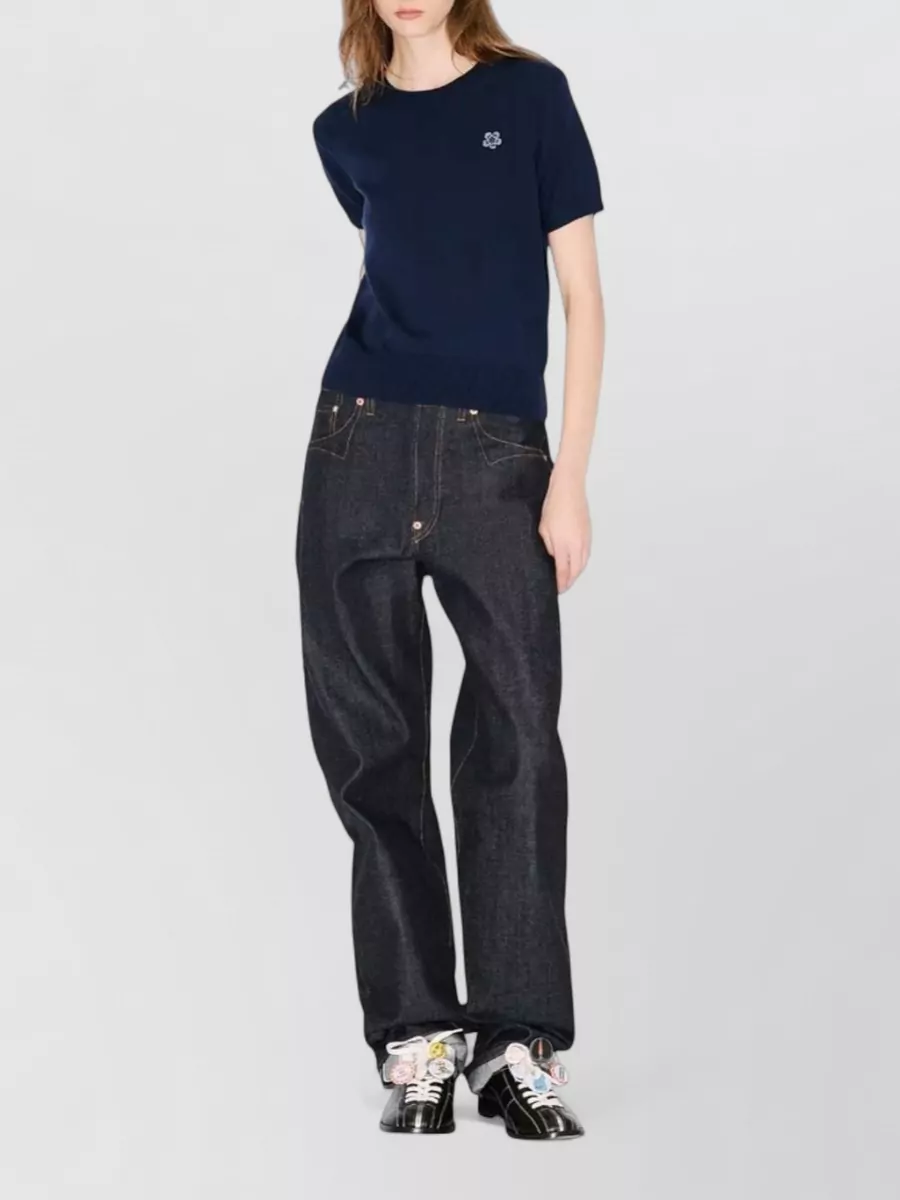 Kenzo embroidered sleeve detail crew neck top