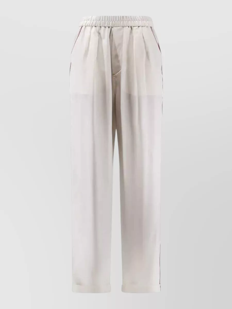 silk trousers tubular trim cuffed hem
