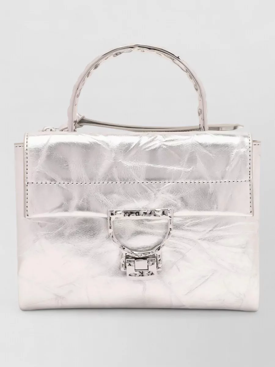 Coccinelle metallic clutch bag top handle buckle