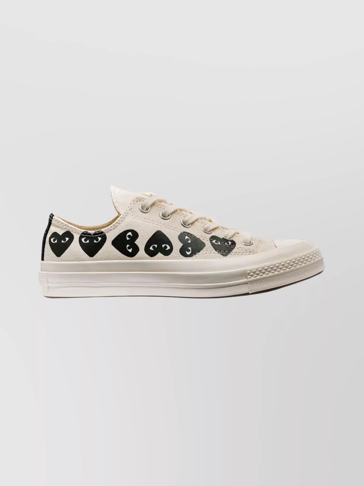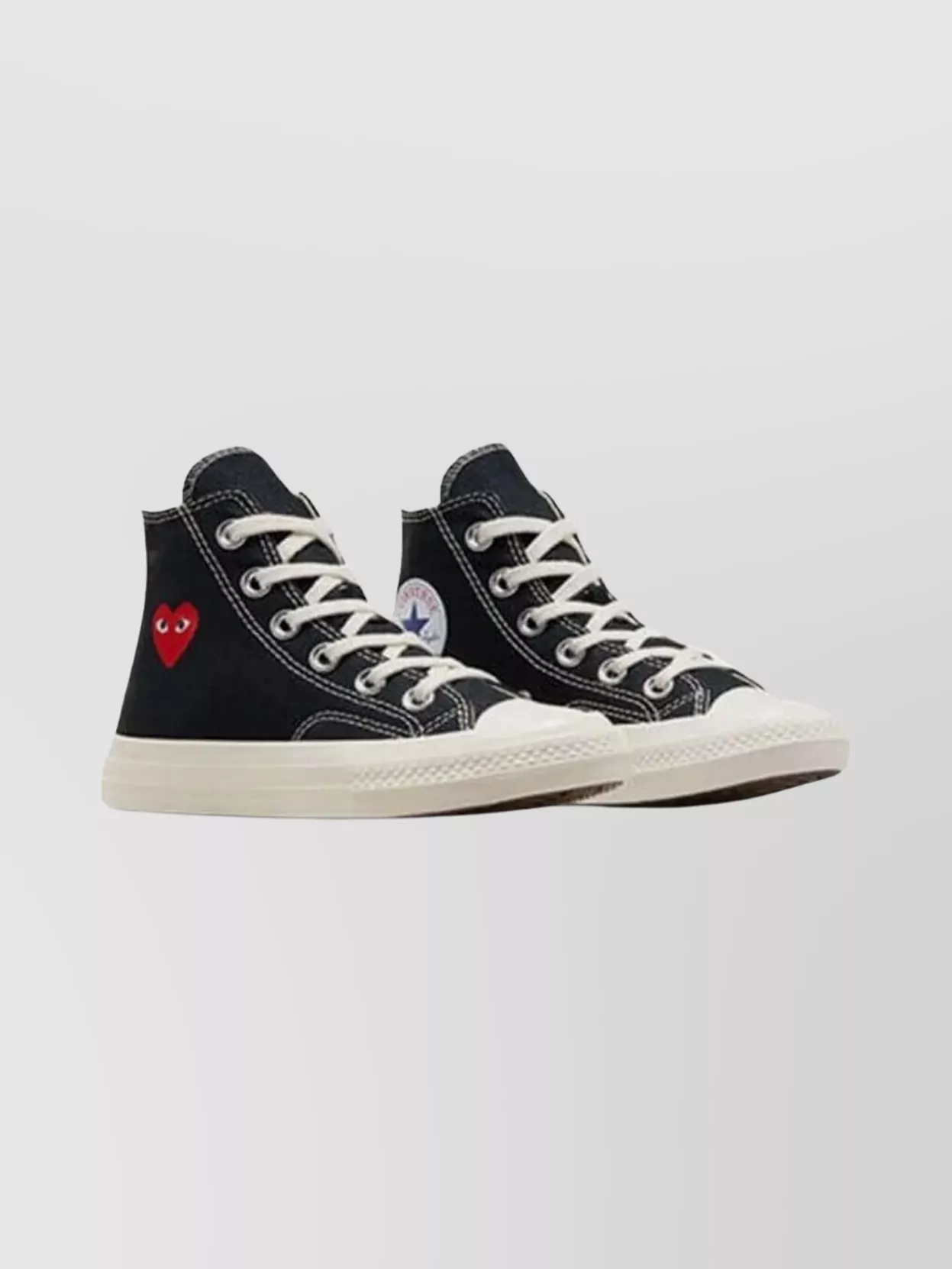 Embrace the affectionate charm of Comme des Garçons Play. Show your love with the brand's iconic heart emblem adorning T-shirts, while exploring a range of striped tops, cardigans, and knitwear. Rei Kawakubo's design universe comes alive through the iconic motif, offering a glimpse into the label's creative realm. Complete your ensemble with a pair of Comme des Garçons Play Converse sneakers, deciding between hi-tops or low-tops for the perfect finishing touch. Read more