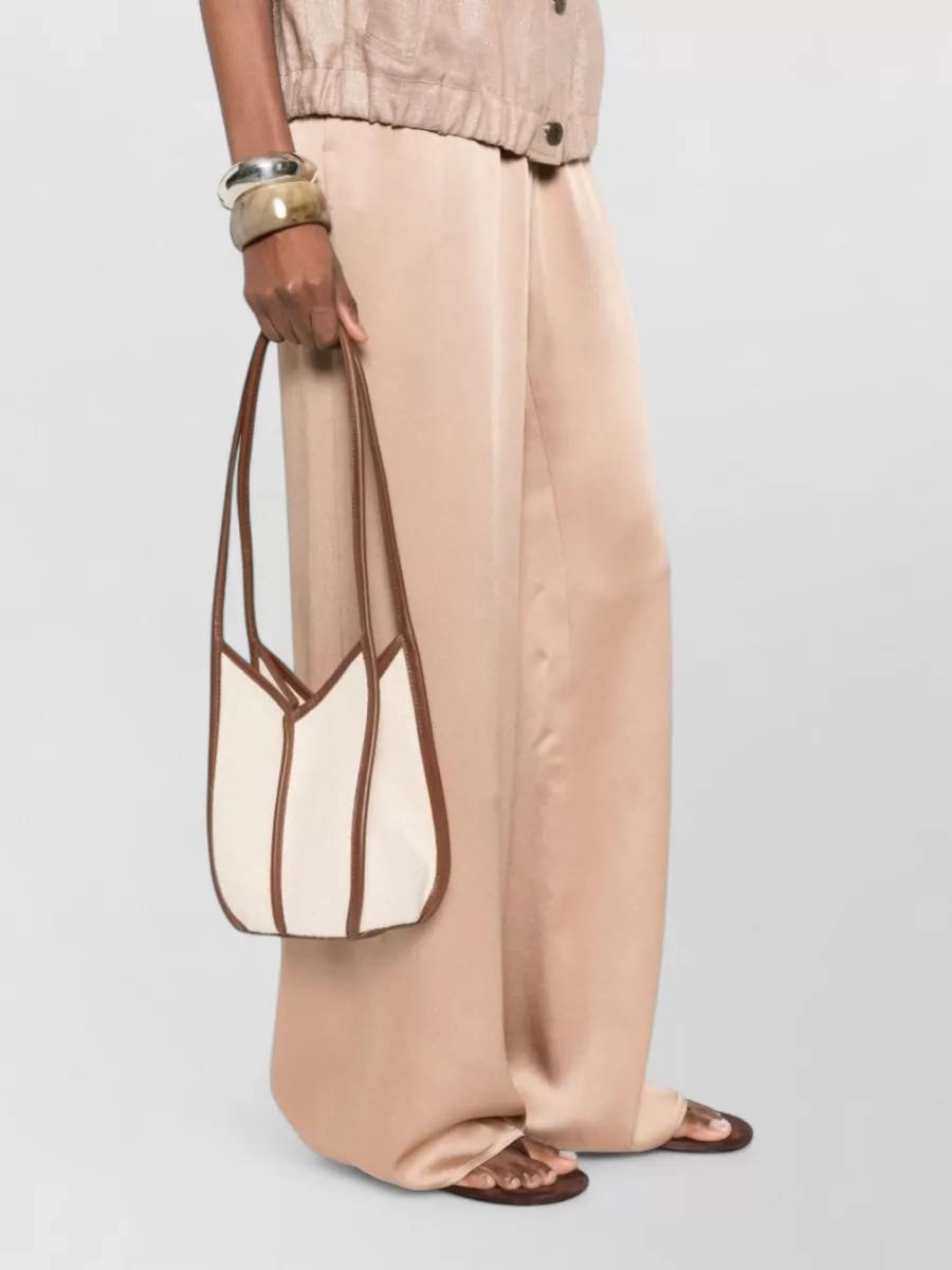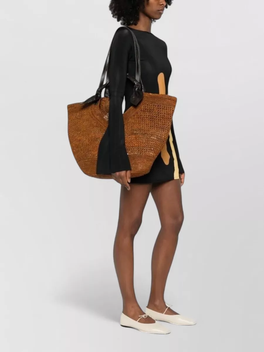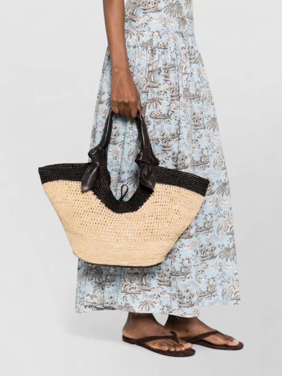 rafia tote bag silk nylon leather handles