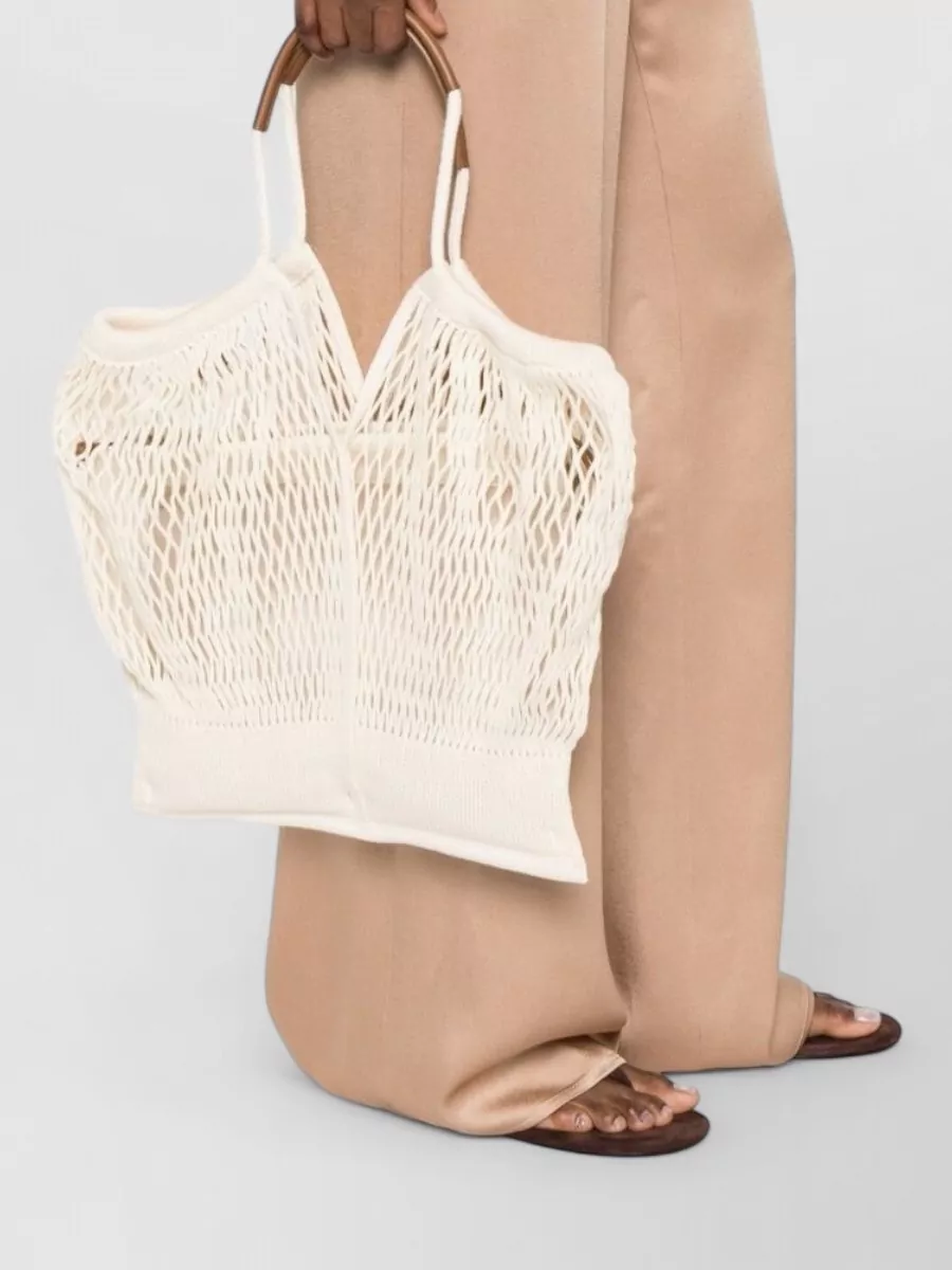 Hereu calella silk mesh tote bag wooden handles